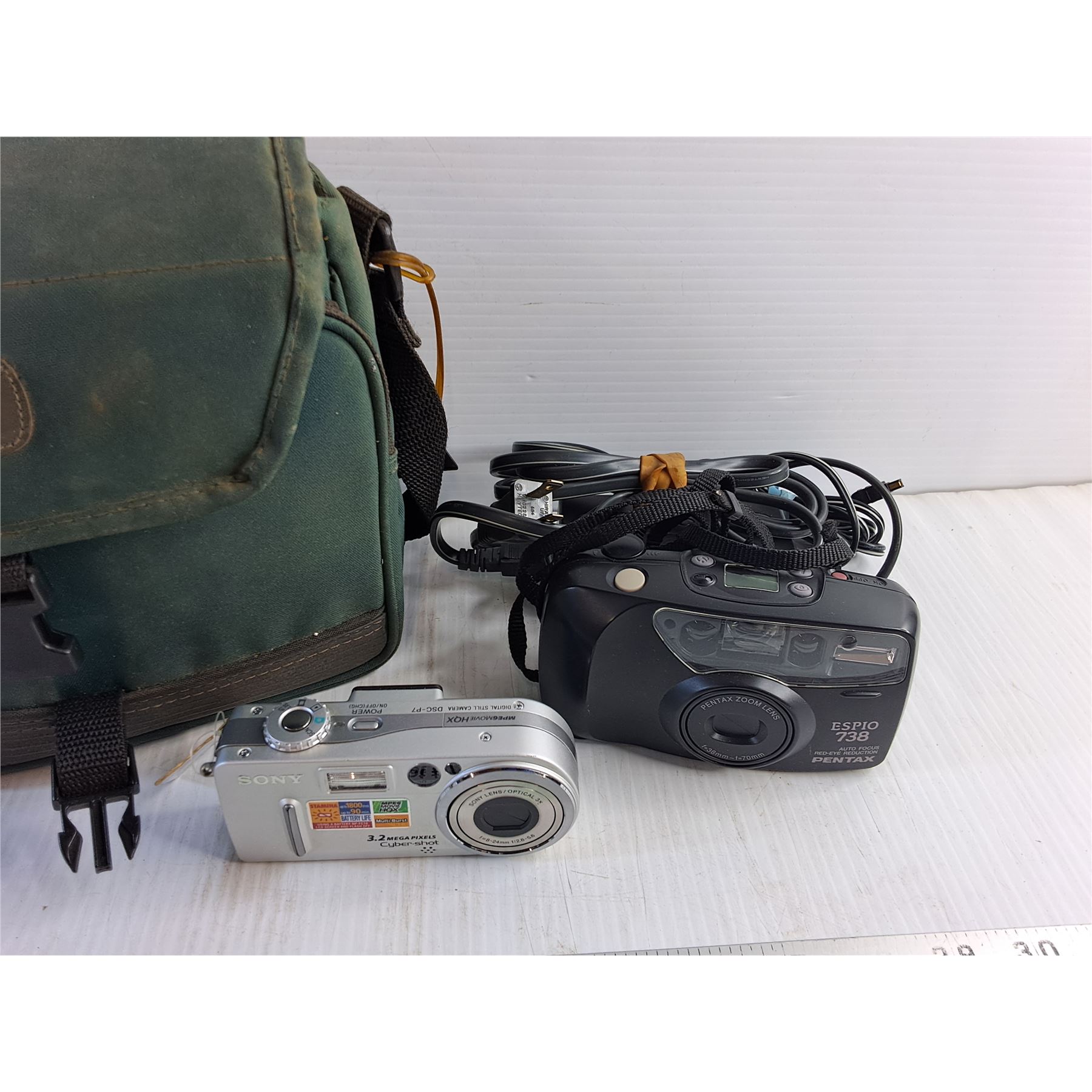 Sony Cybershot and Pentax Espio 738 Cameras - As Is and Camera Bag