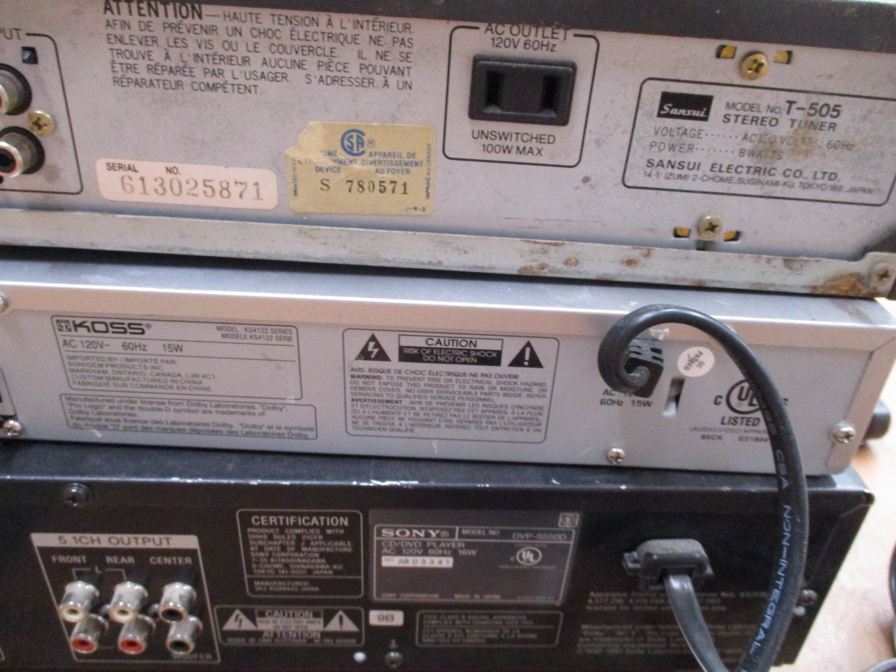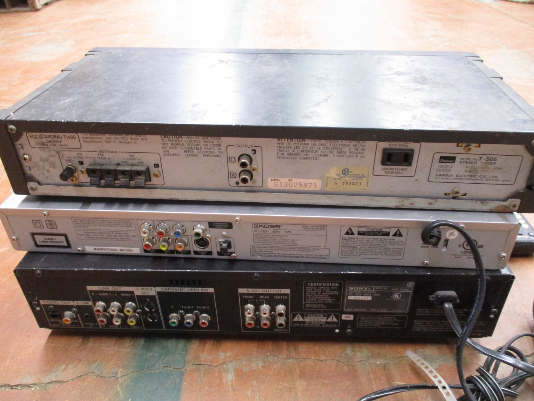 *Sony DVD CD, Koss DVD, Sansui am/fm stereo tuner