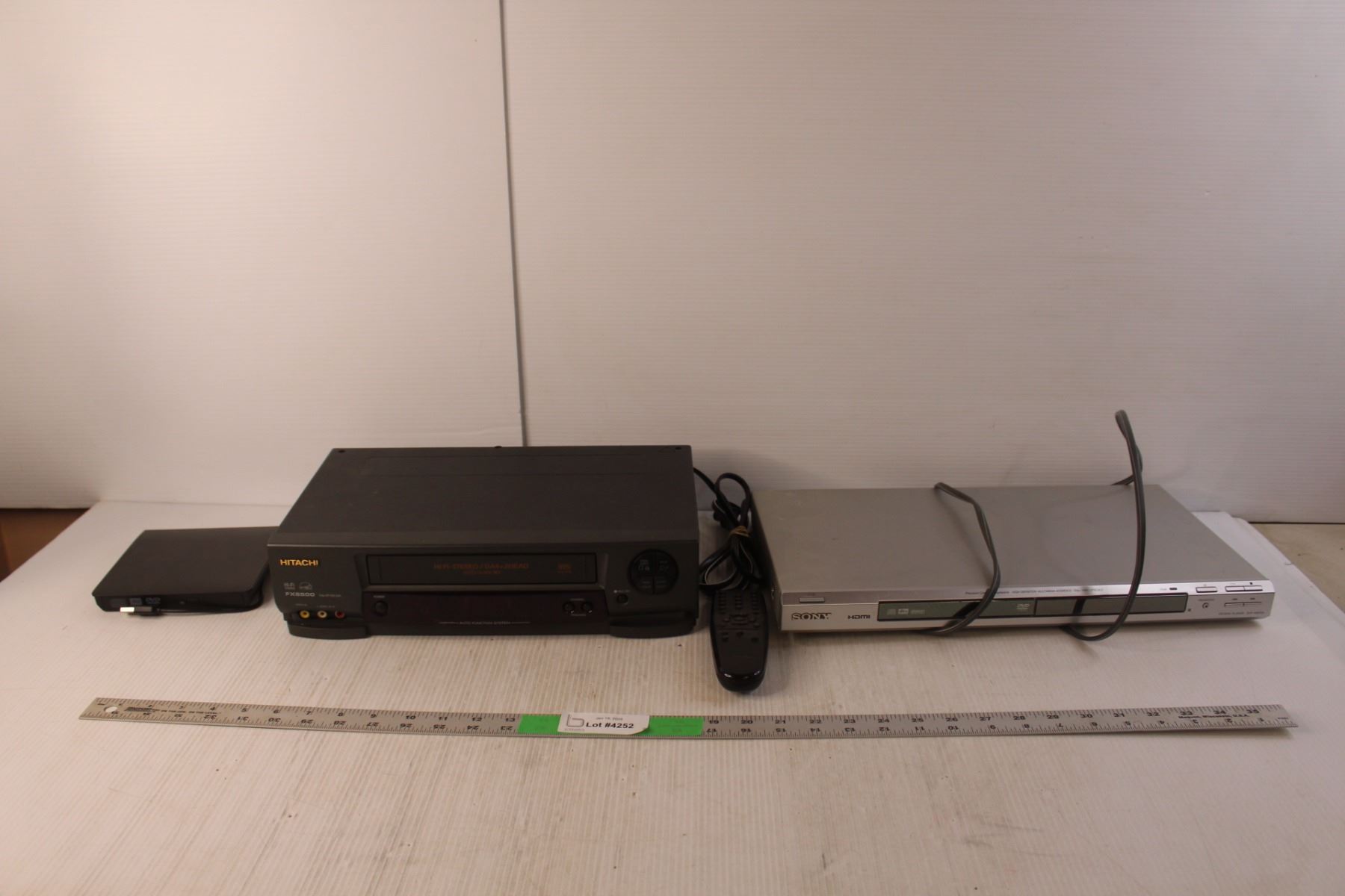 Sony DVD Player, Hitachi VCR- Both Power On, External ODD/HDD Device- As Is