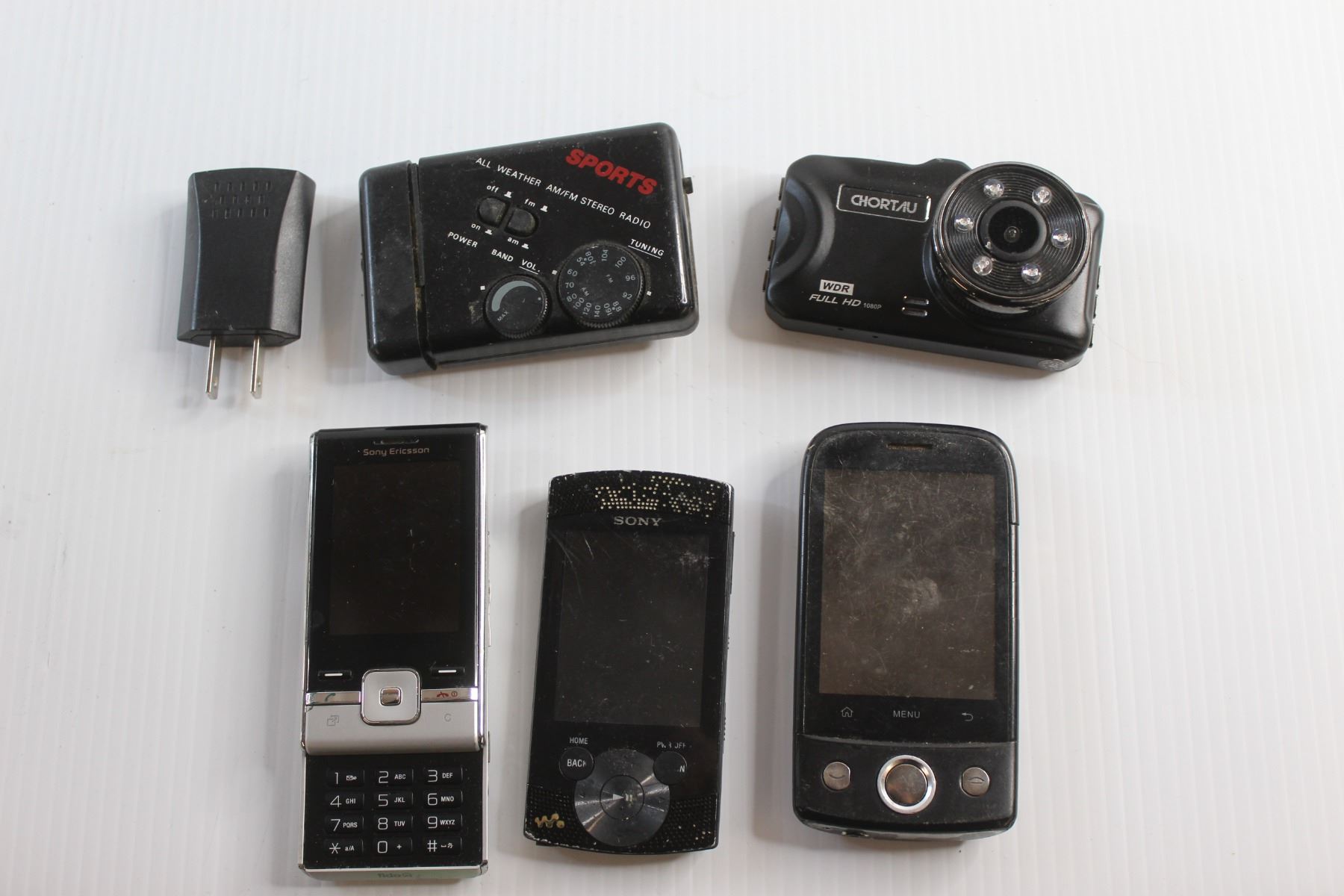 Sony Ericson & Wind Phones, Sports All Weather AM/FM Radio, Chortau Camera and Power Block - As Is