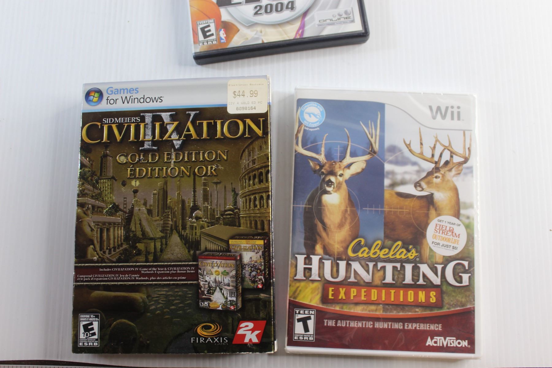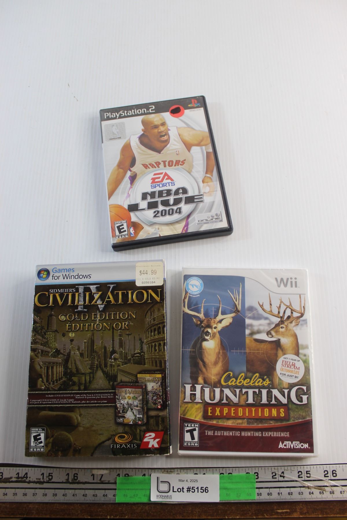 Sony Playstation 2 (PS2) NBA Live 2004, PC Civilization IV and Wii Cabela's Hunting Expedition Games