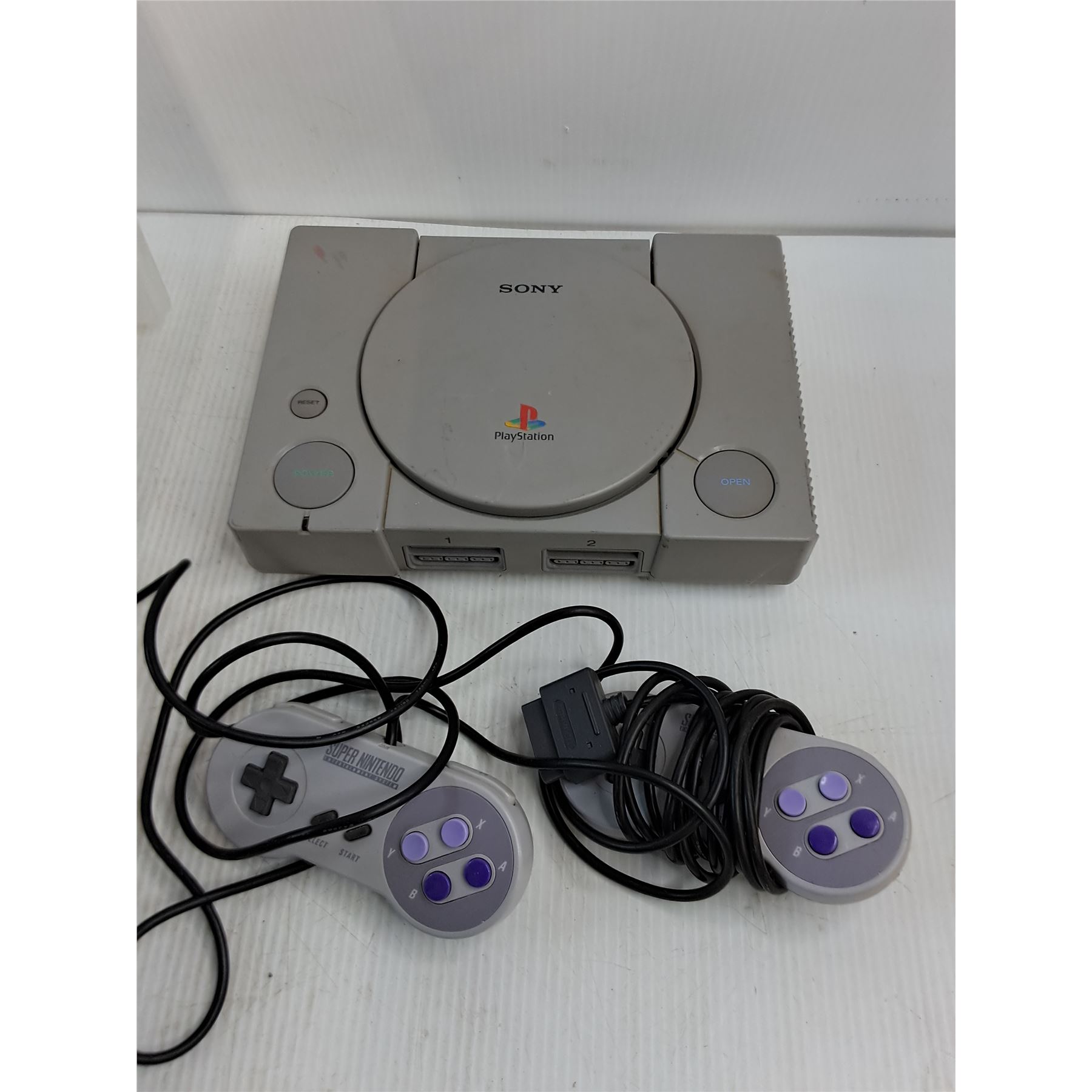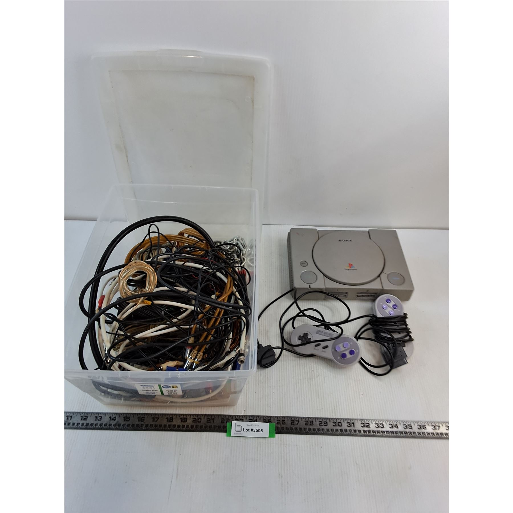 Sony Playstation - Untested, Nintendo Controllers, Assorted Electronics Cords, Chain, Tote, Misc.