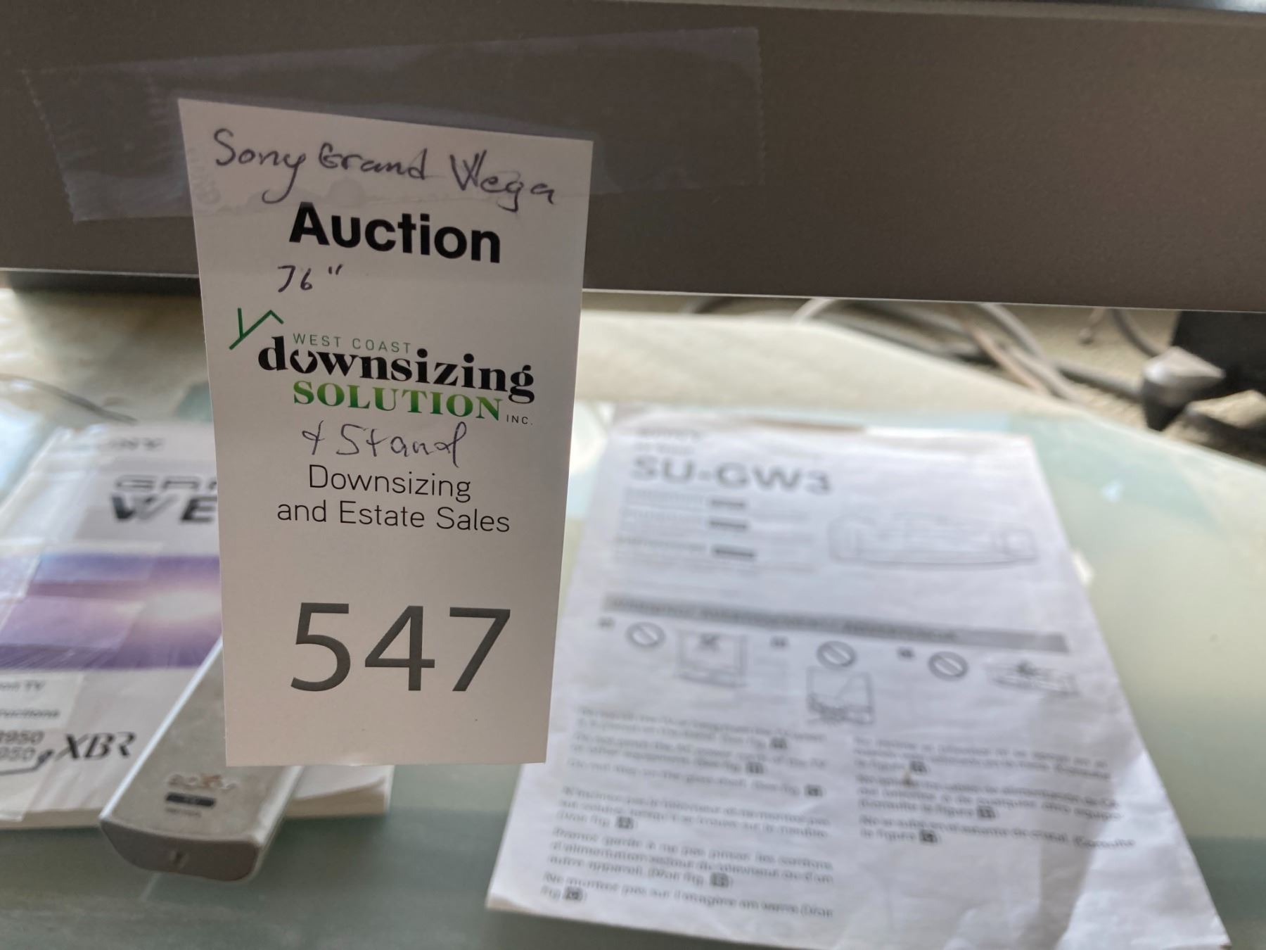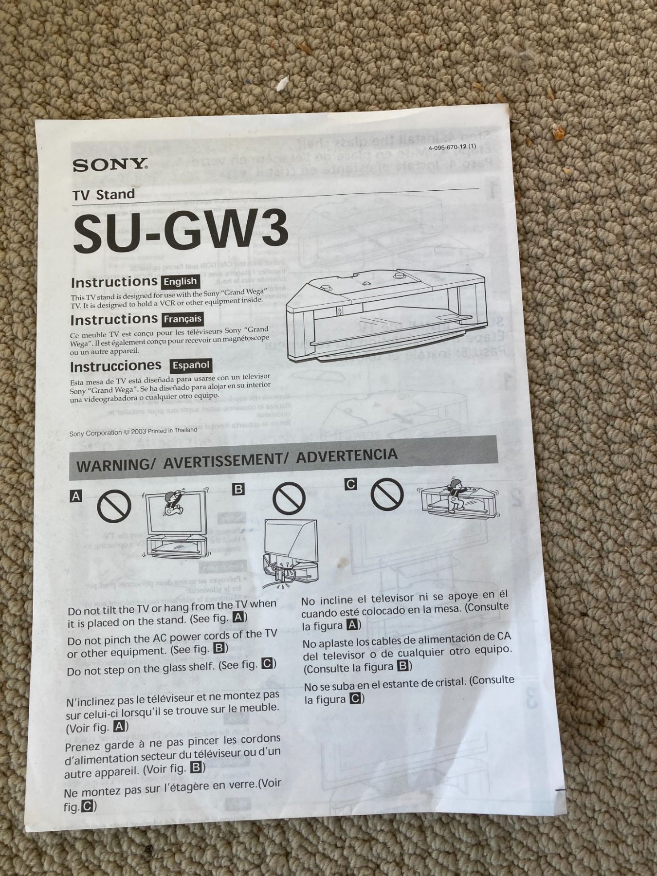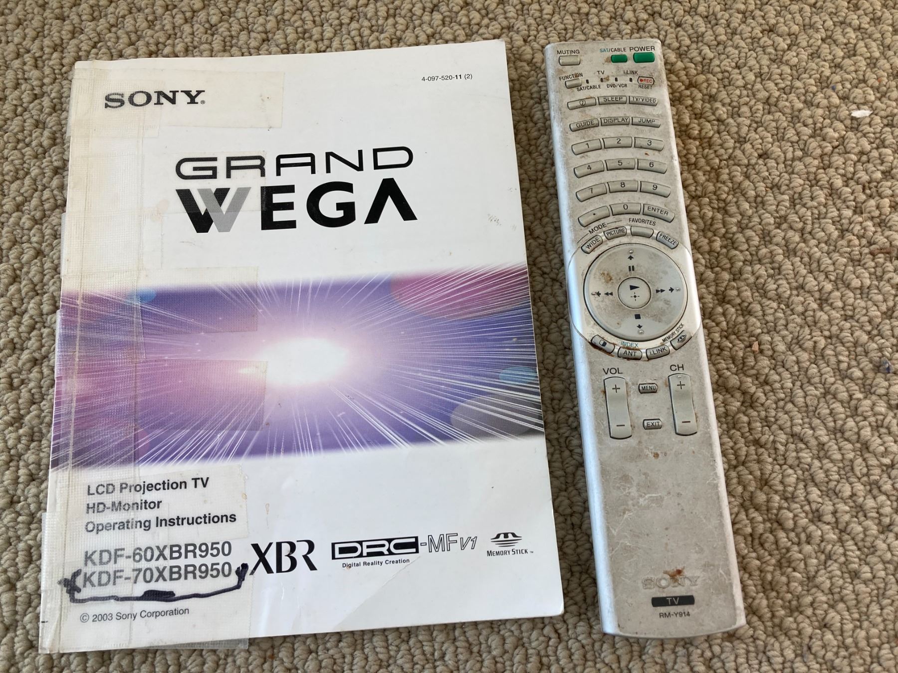 Sony Vega projection TV XB2 76”, stand and various cables. UntestedBring help to move. Pickup 11-12pm.