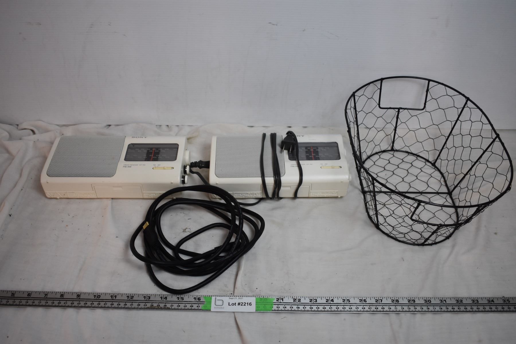 Sony Stereo's in wire basket with HDMI cable