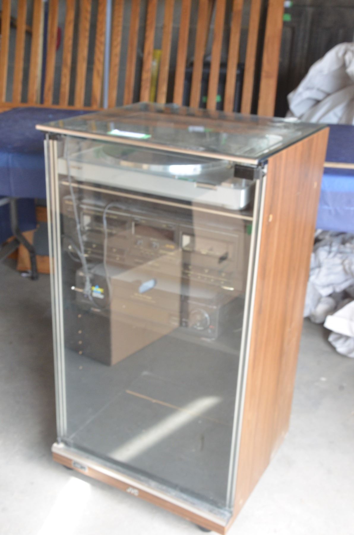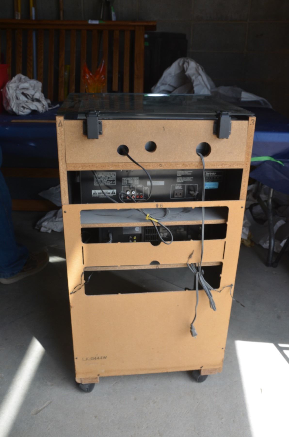 Sony VCR, Technic's Cassette Tape Player and Sony Record Player in Cabinet