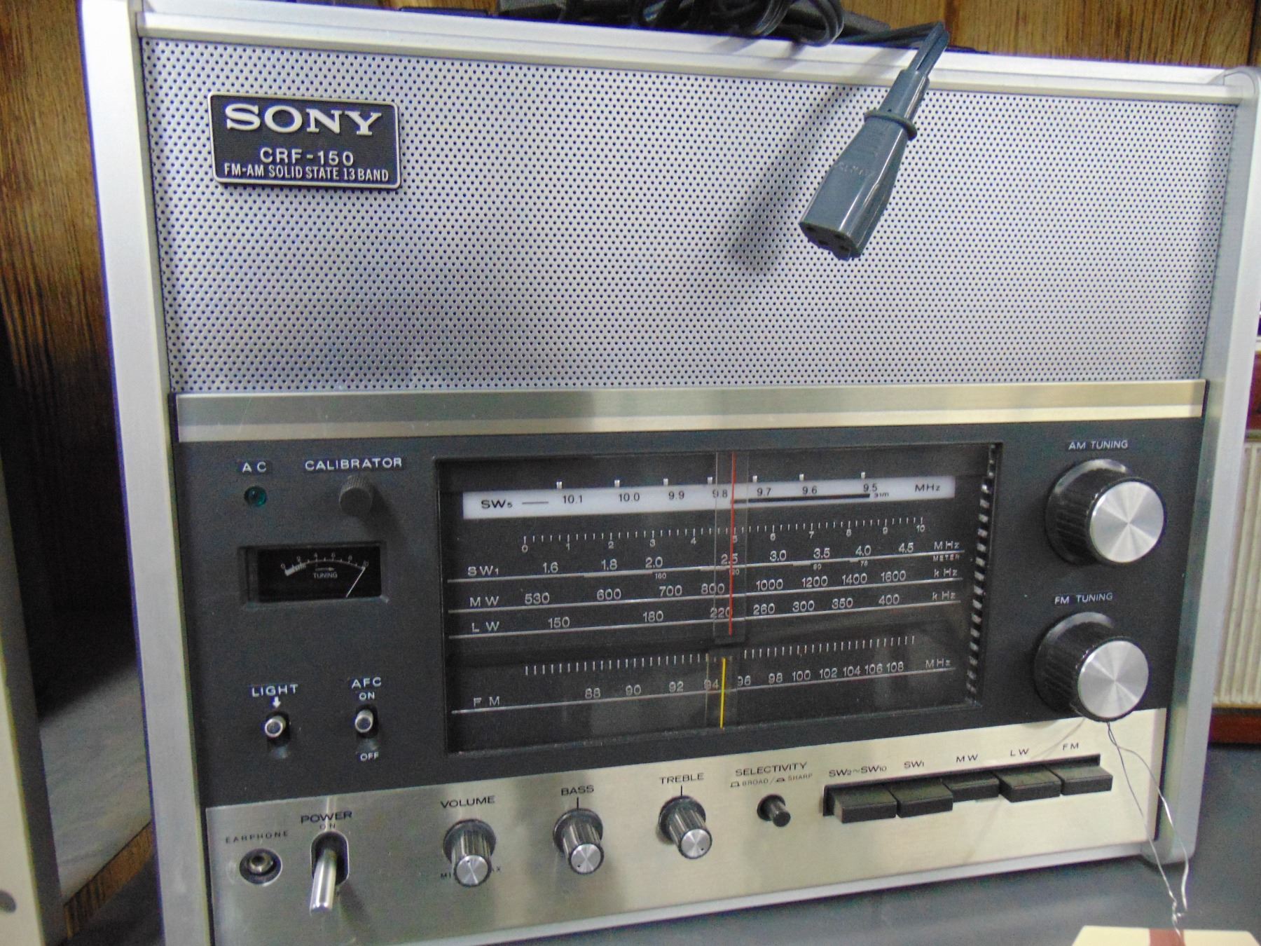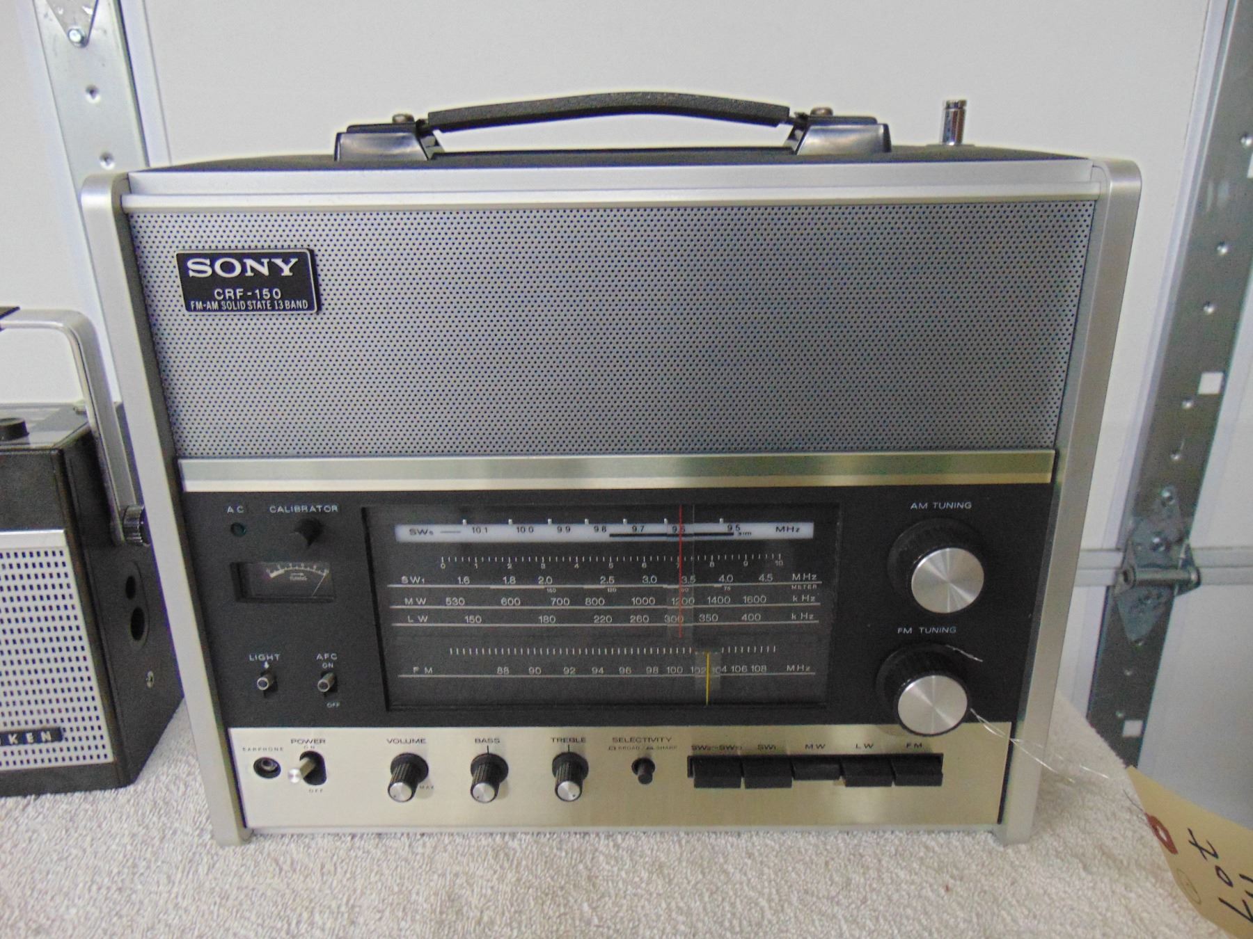 Sony 13 band portable; model CRF-150; works, but needs to have all of its switches and contacts cleaned.