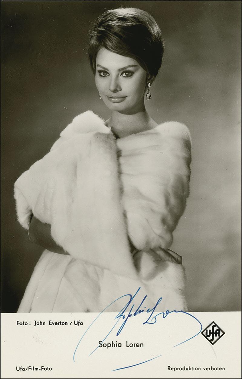 Early and eye-catching vintage 3.5 x 5.5 postcard photo, signed in blue ink. In very fine condition. Pre-certified PSA/DNA and RRAuction COA.