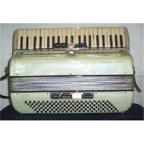 This Soprani Ampliphonic Colleta Keyboard Accordion is a very unique, italian designed instrument. This type of instrument is a hard to find since only a few were made. It's in great condition and its ready to be played and it sounds really good. On the back it reads "334/94 MADE IN ITALY". It comes with its original case, the case does shows signs of age. It has 3-1/3 octave keyboard, 5 treble stops, 120 bass buttons, 4 bass stops,reed mutes, and a great sound. Questions and Comments are greatly appreciated!