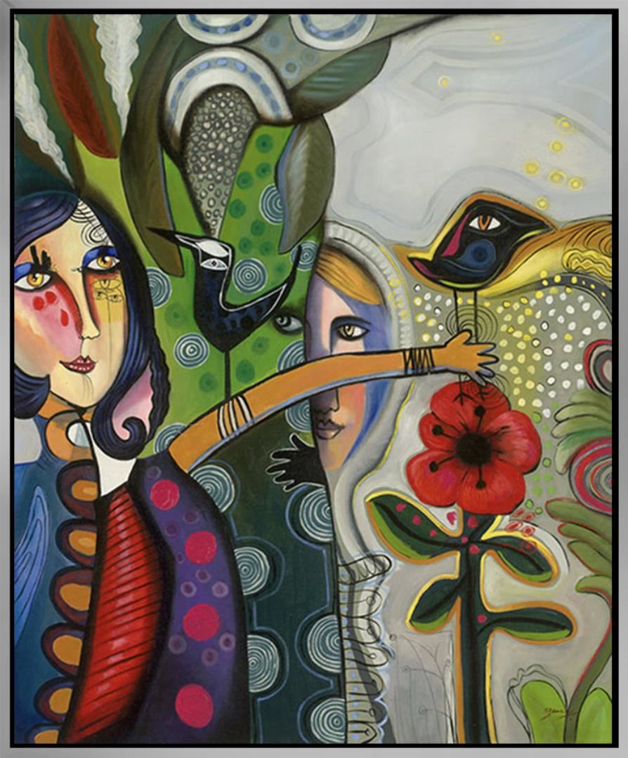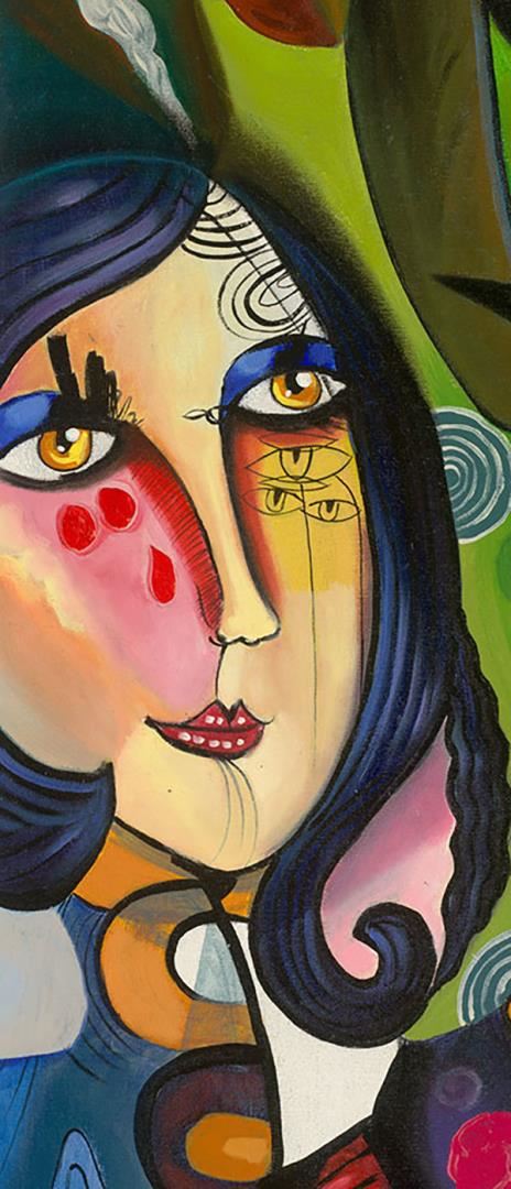Amazing original acrylic on canvas. Hand signed by Azarin. This artwork comes framed. Frame 34x41 Art 32x39