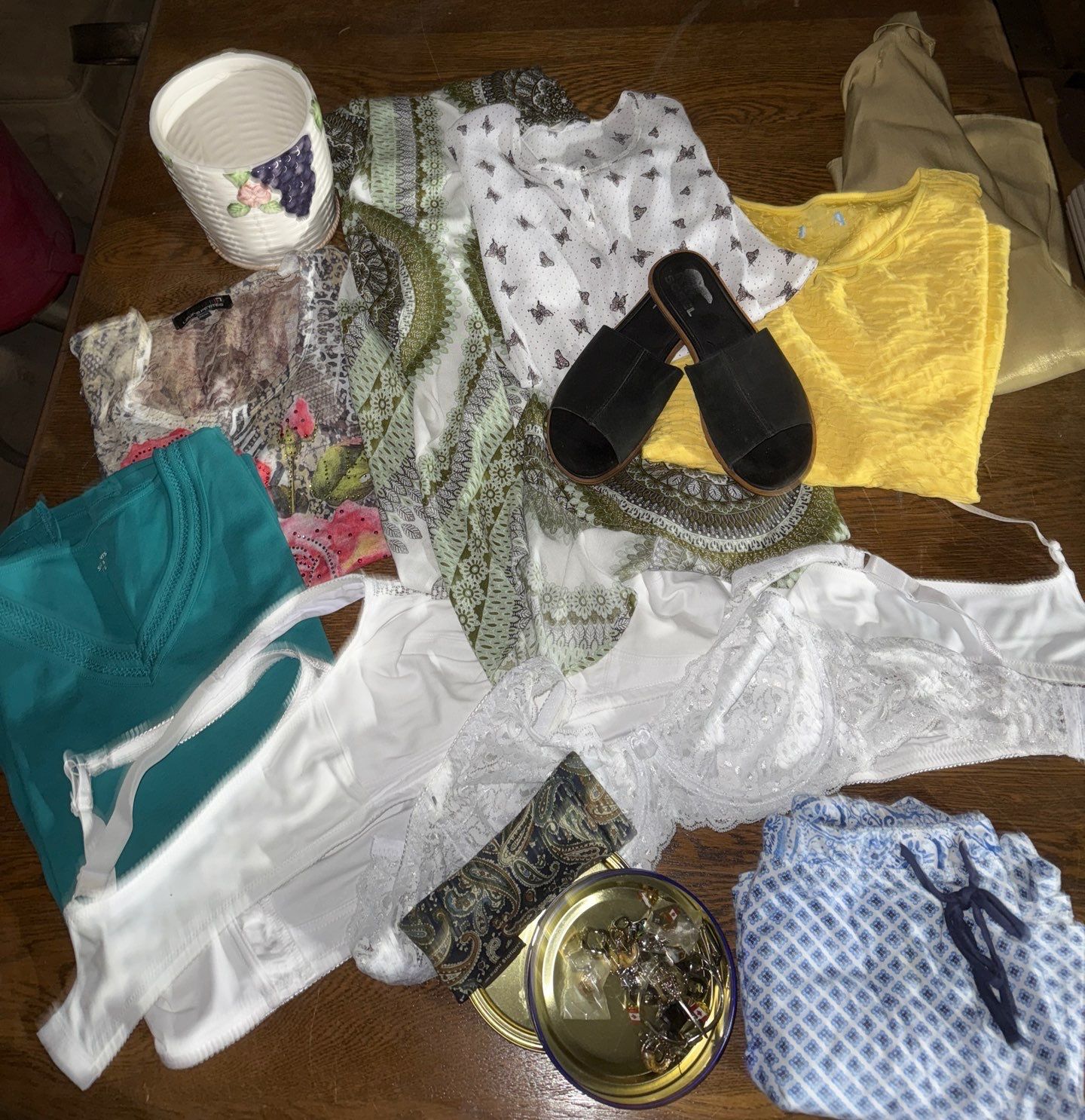 Sorel Flip Flops & Woman's Collection Of Clothing ++ Costume Jewelry in Tin