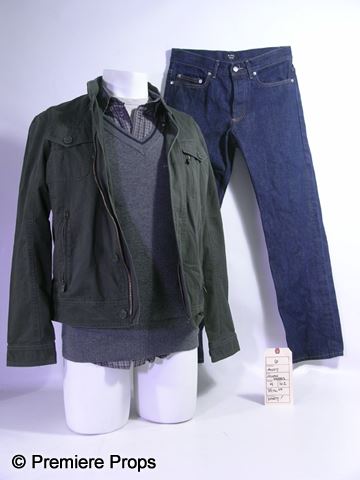 Andy (Julian Morris) Off White "Hugo Boss" Crew Neck Short Sleeve T-Shirt (Size S), Gray/Lavendar/Green "John Varvatos" Plaid Button Down Shirt With Collar (Size M), Dark Gray "Splendid Mills" V-Neck Sweater (Size S), Army Green "Ben Sherman" Jacket With Full Zip And Full Button CLosure (Size M), Dark Wash "A.P.C." Denim Jeans (Size 28) (Complete With Wardrobe Tag, Screen Worn In Pary Scene)