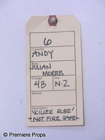Sorority Row - The Sisters of Theta Pi Are Dying To Keep a Secret. From the set, this is Andy's (Julian Morris) screen worn, hero, black with purple on hood and arms zip up hooded graduation robe with blood spatters. (Approx 72" from head to toe) Includes wardrobe tag! This is the Killer's hero robe! An incredible addition to your horror movie memorabilia collection! (SRR1044)