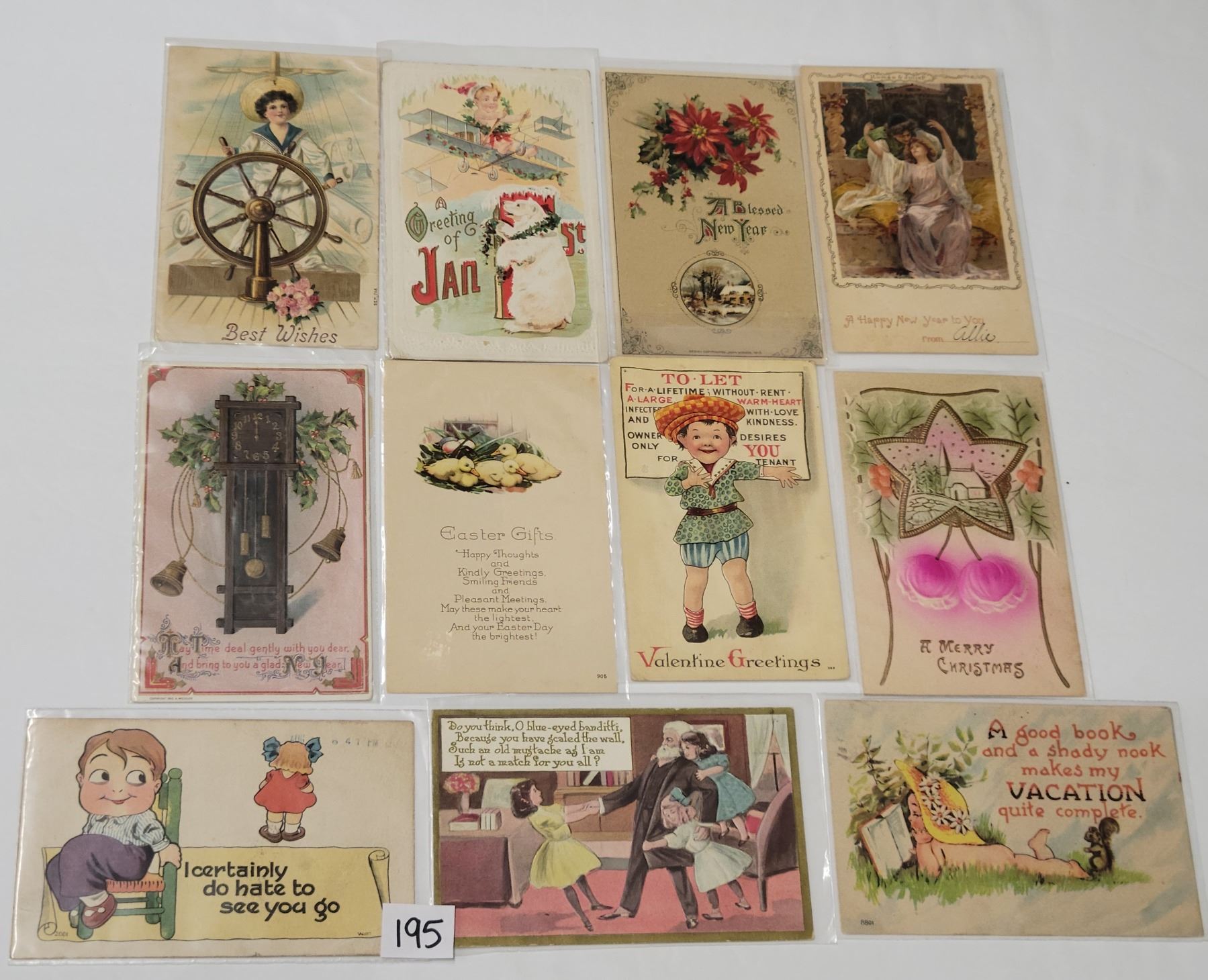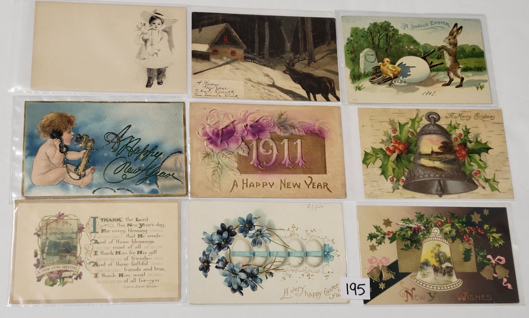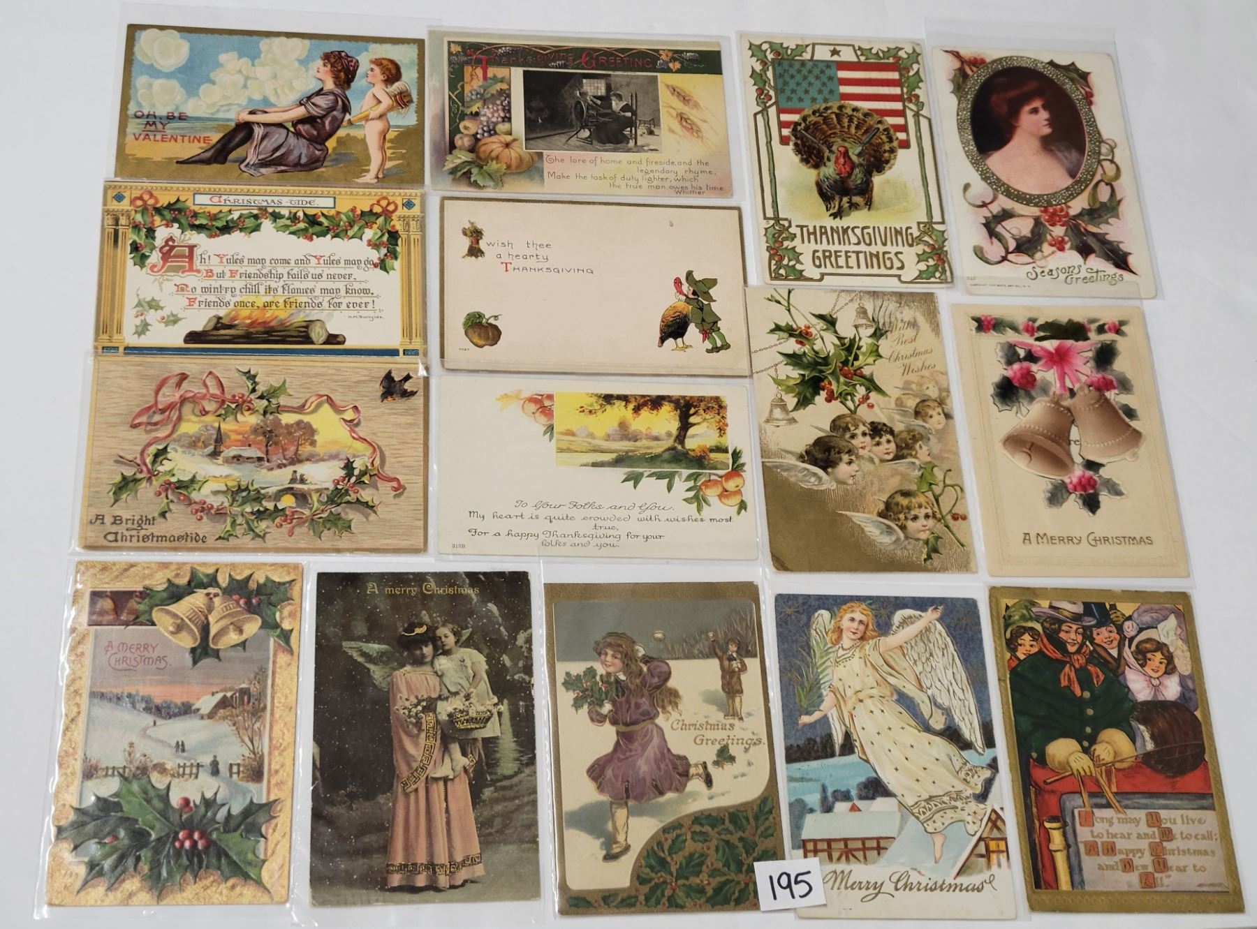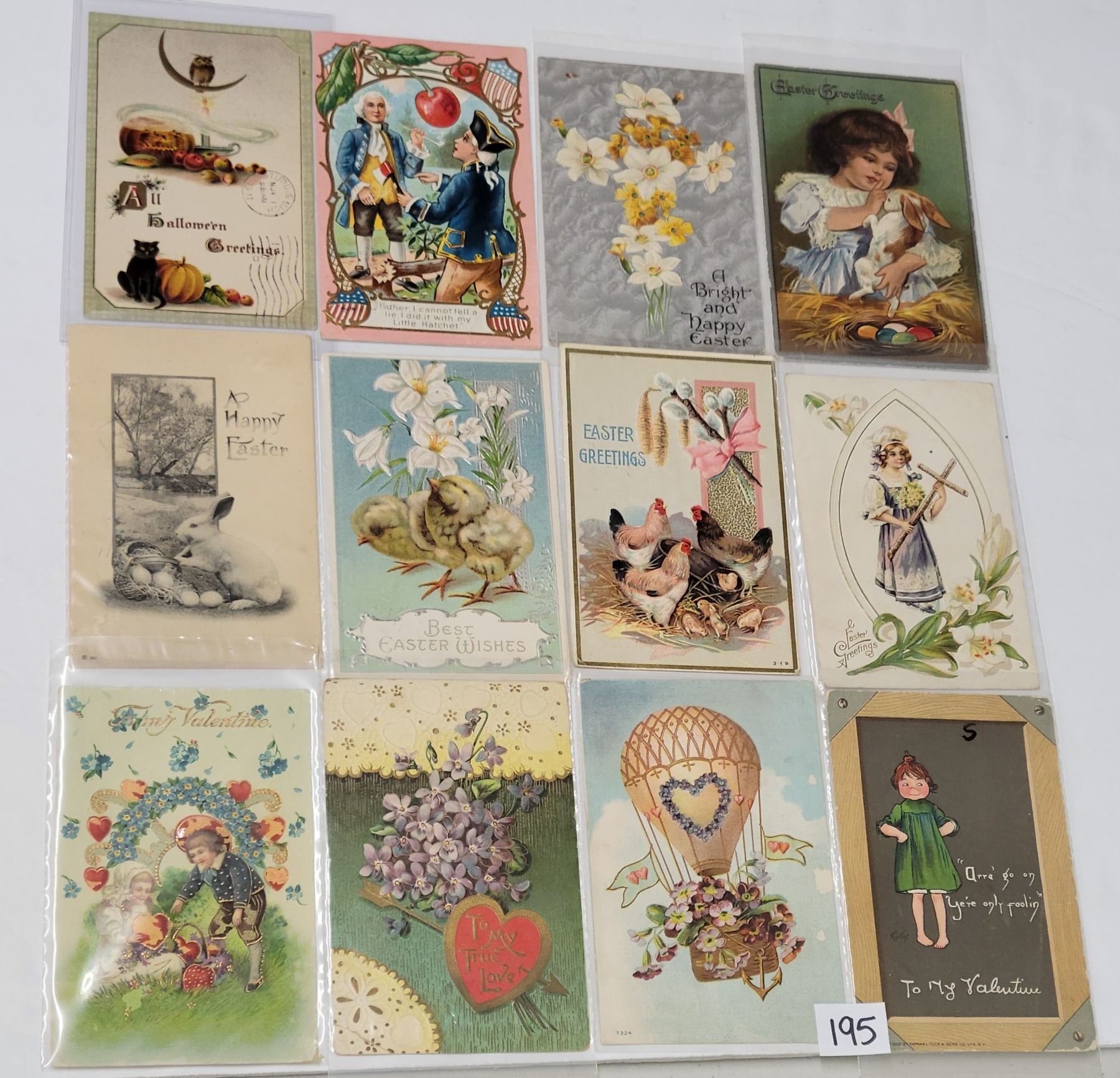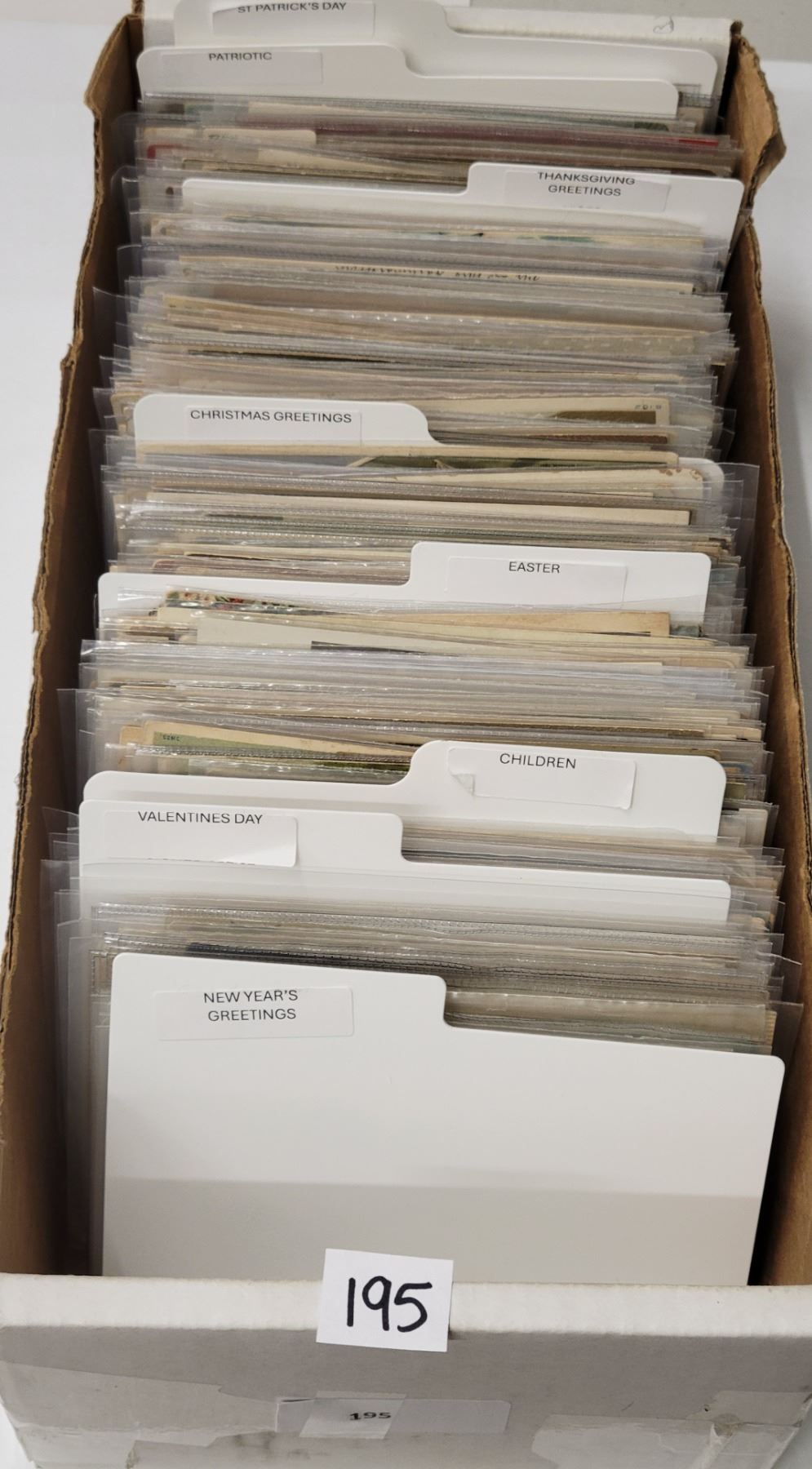 Approx. 480 cards. Mostly sorted. New Years, Valentine's Day, Easter, Christmas, Thanksgiving, Patriotic, St. Patrick's Day, a few Halloween, children, etc.