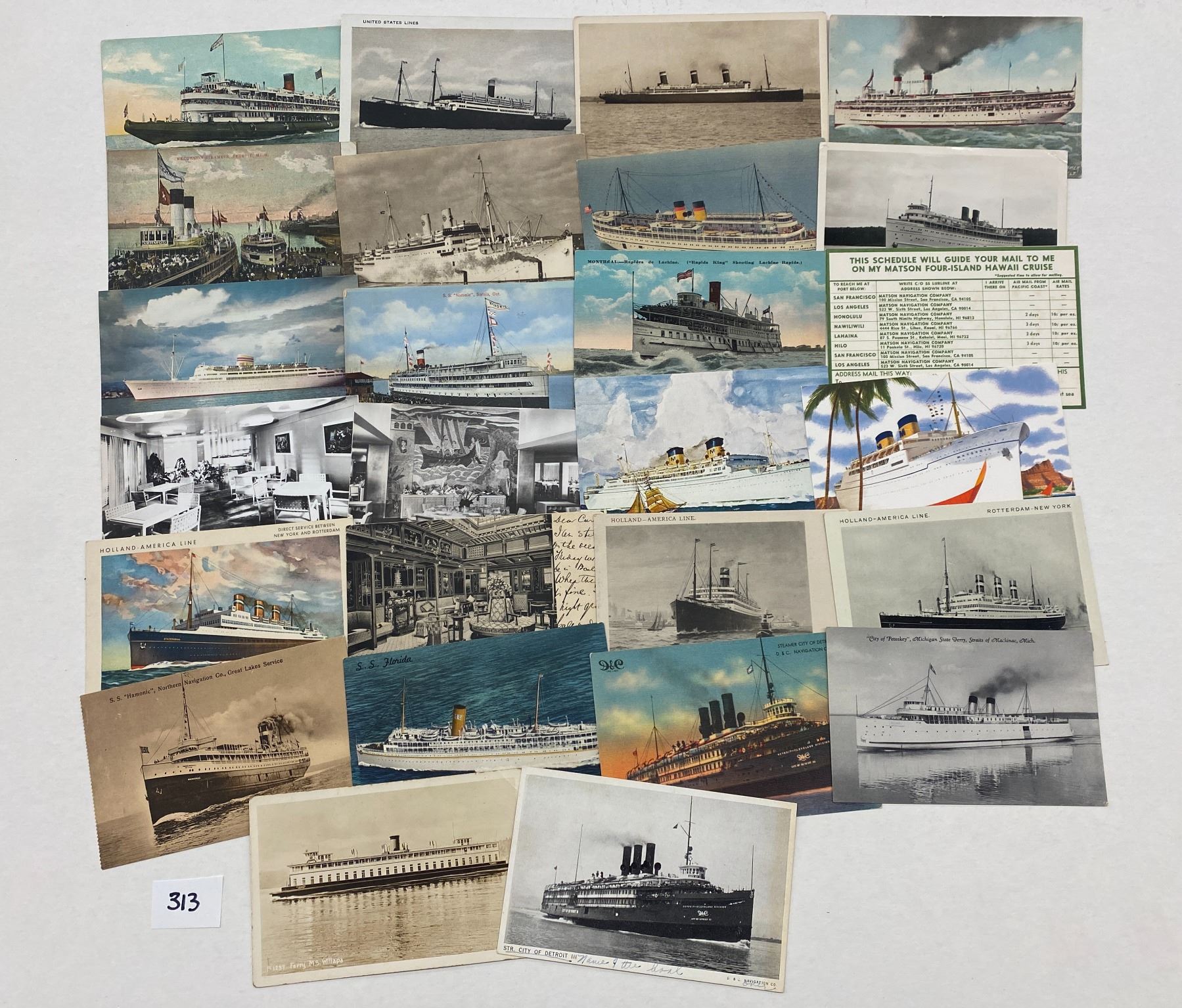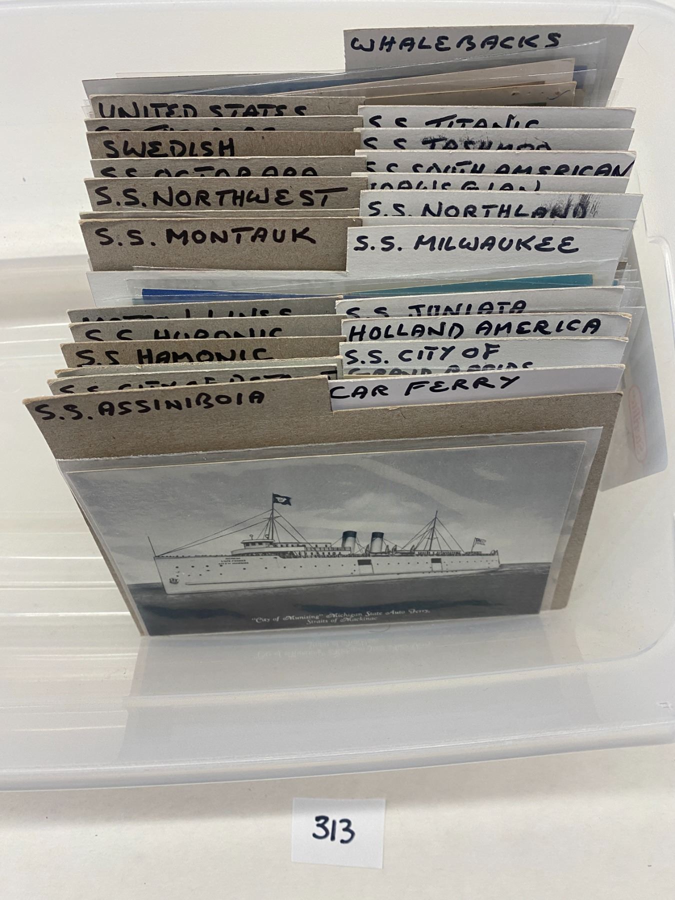 Approx. 185 steam ship postcards. Broken down in over 20 break downs.