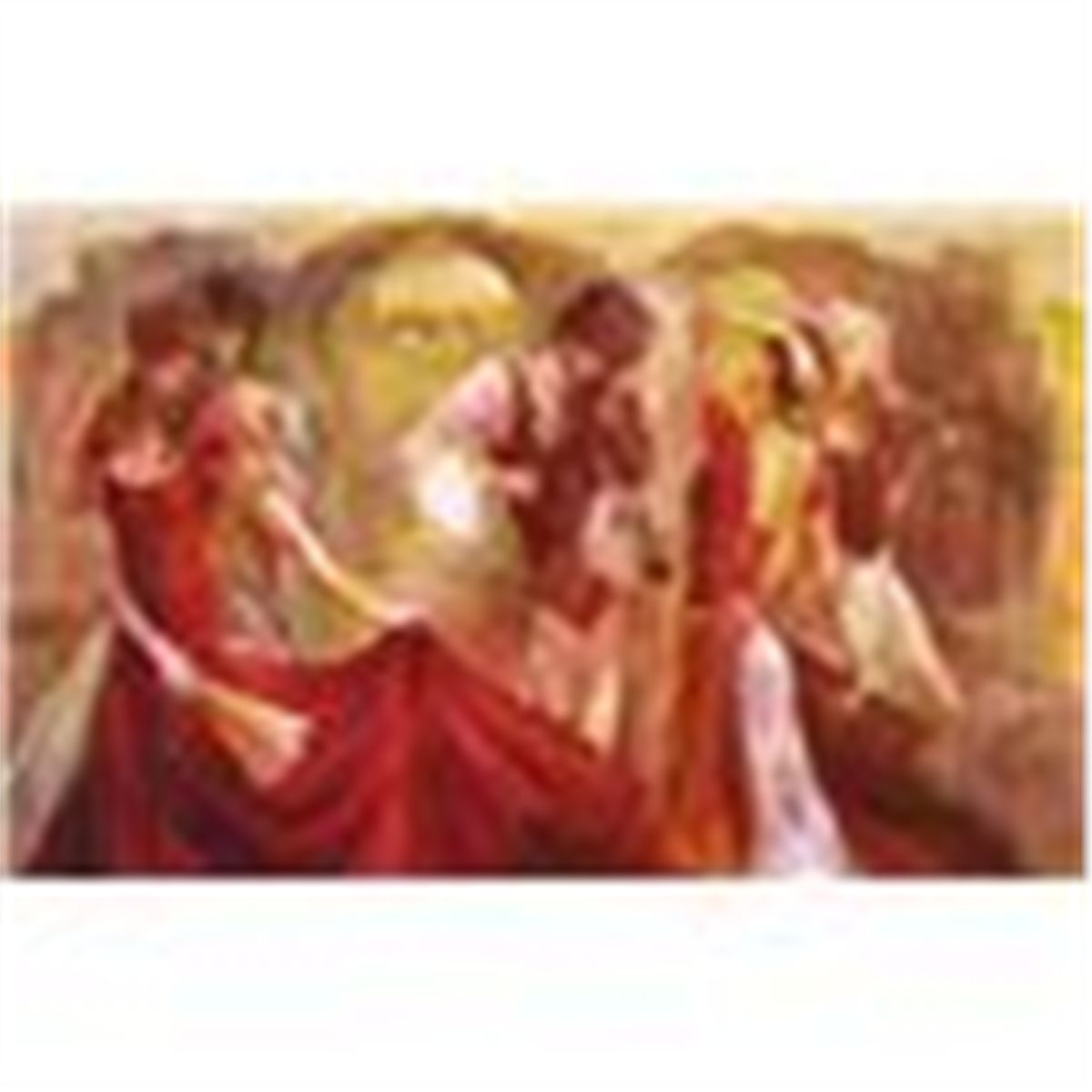 Sotskova, Lena: MIDSUMMER DREAM: Size: 34x22. Edition: /375. Giclee on canvas embellished. Description: While reading a book of castles of Great Britain I was taken by their magnificence, my imagination took me back in time to Shakespeare's plays, hence "MIDSUMMER DREAM" was born. I gave to my figures in this painting delicate and playful personalities and dress them in costumes of that epoque. The colors show dialogue between the characters and confidence, the single movement of his hand, the turn of her head... HAND SIGNED BY THE ARTIST. Certificate of authenticity included. Additional images available upon request. Please do not hesitate to ask further questions.