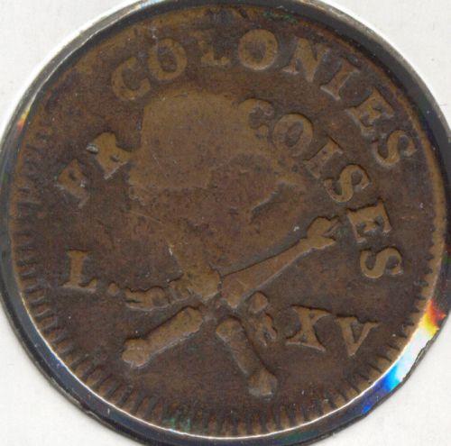 Sou 1767-A French Colonies, RF counterstamped, EF-40, great condition.
