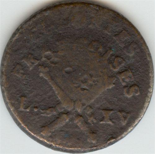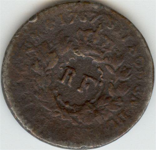 Sou 1767-A French Colonies, RF counterstamped, F-12, fairly well centered punch.