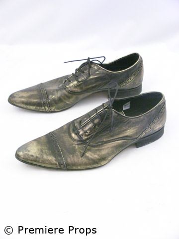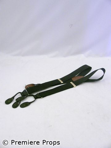 Floyd's (Bernie Mac) screen worn, hero, dark gold cotton/poly "Dolce & Gabbana" l/s 2 button suit jacket (size 54), black wool w/ tuxedo stripe "Zanella" slacks (size 38), black w/ self stripe "Ike Behar" l/s button up shirt (made to order), black silk "Prada" skinny neck tie, black w/ gold detail suspenders, black pleated silk w/ silver buckles cummerbund, black/green/gold glass squares on gold studs cufflinks, gold brushed leather "Aldo" lace up shoes (size 42)