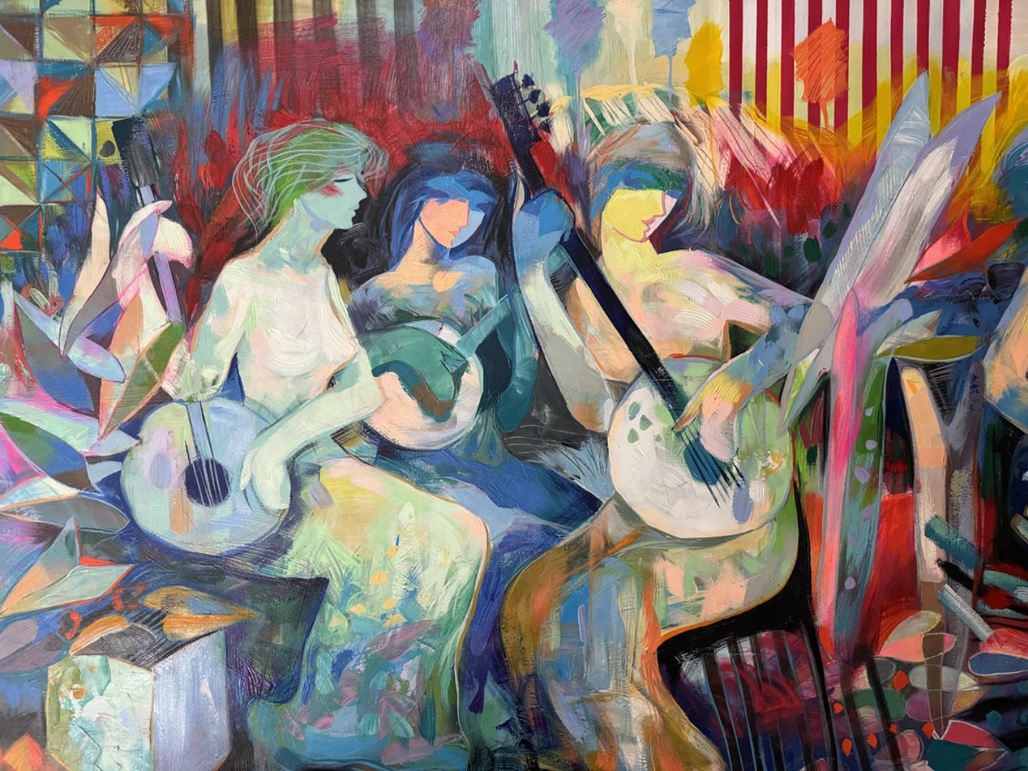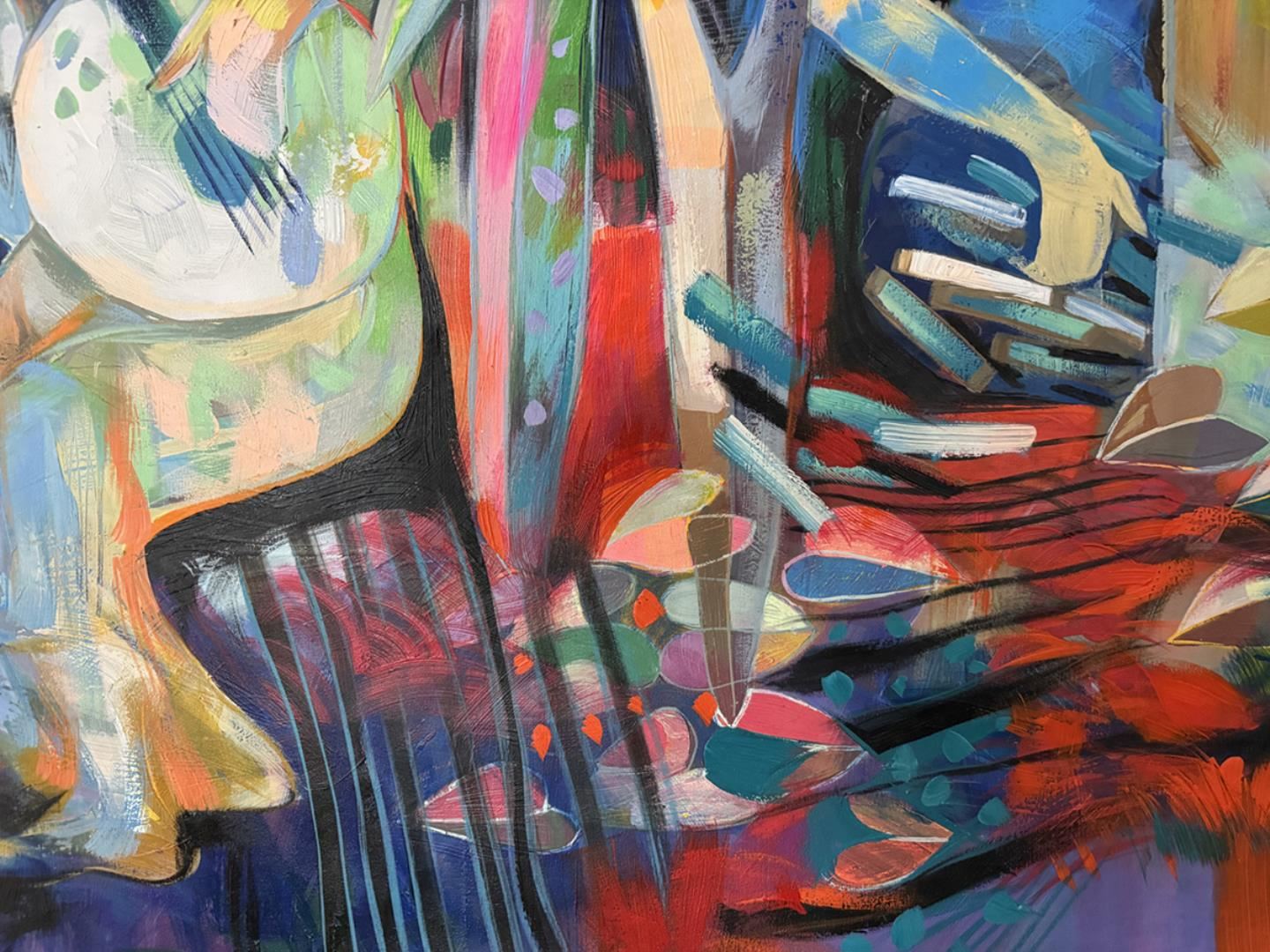 Enchanting original acrylic on canvas. Hand signed by artist. This artwork comes rolled. Art size 70x48.