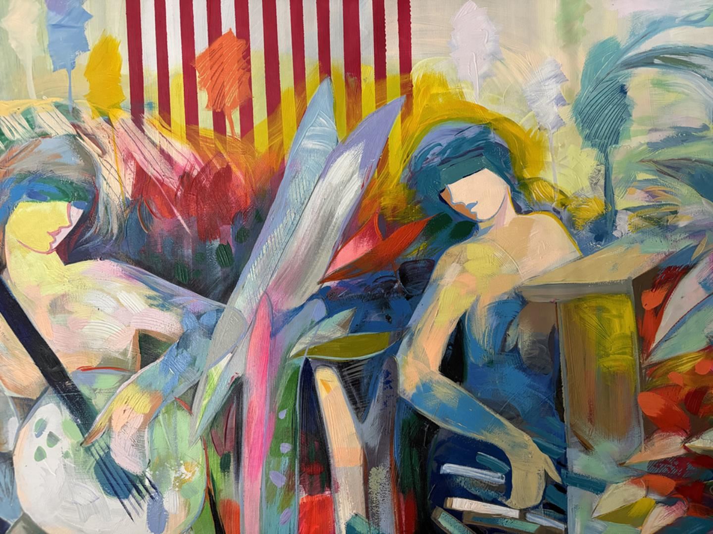 Enchanting original acrylic on canvas. Hand signed by artist. This artwork comes rolled. Art size 70x48.