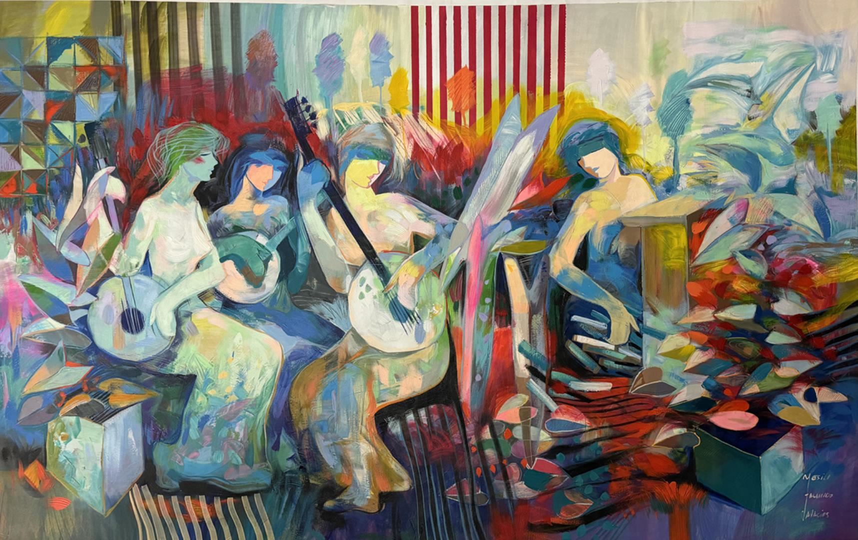 Enchanting original acrylic on canvas. Hand signed by artist. This artwork comes rolled. Art size 70x48.