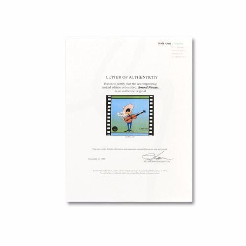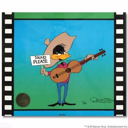 Own this amazing piece based on the original line image hand drawn and hand-inked on paper by Chuck Jones! "Sound Please" is a sold out limited edition animation cel with hand painted coloring on sericel outline, numbered and hand signed by Chuck Jones (1912-2002)! Includes Certificate of Authenticity! Measures Approx: 12.5" x 10.5".