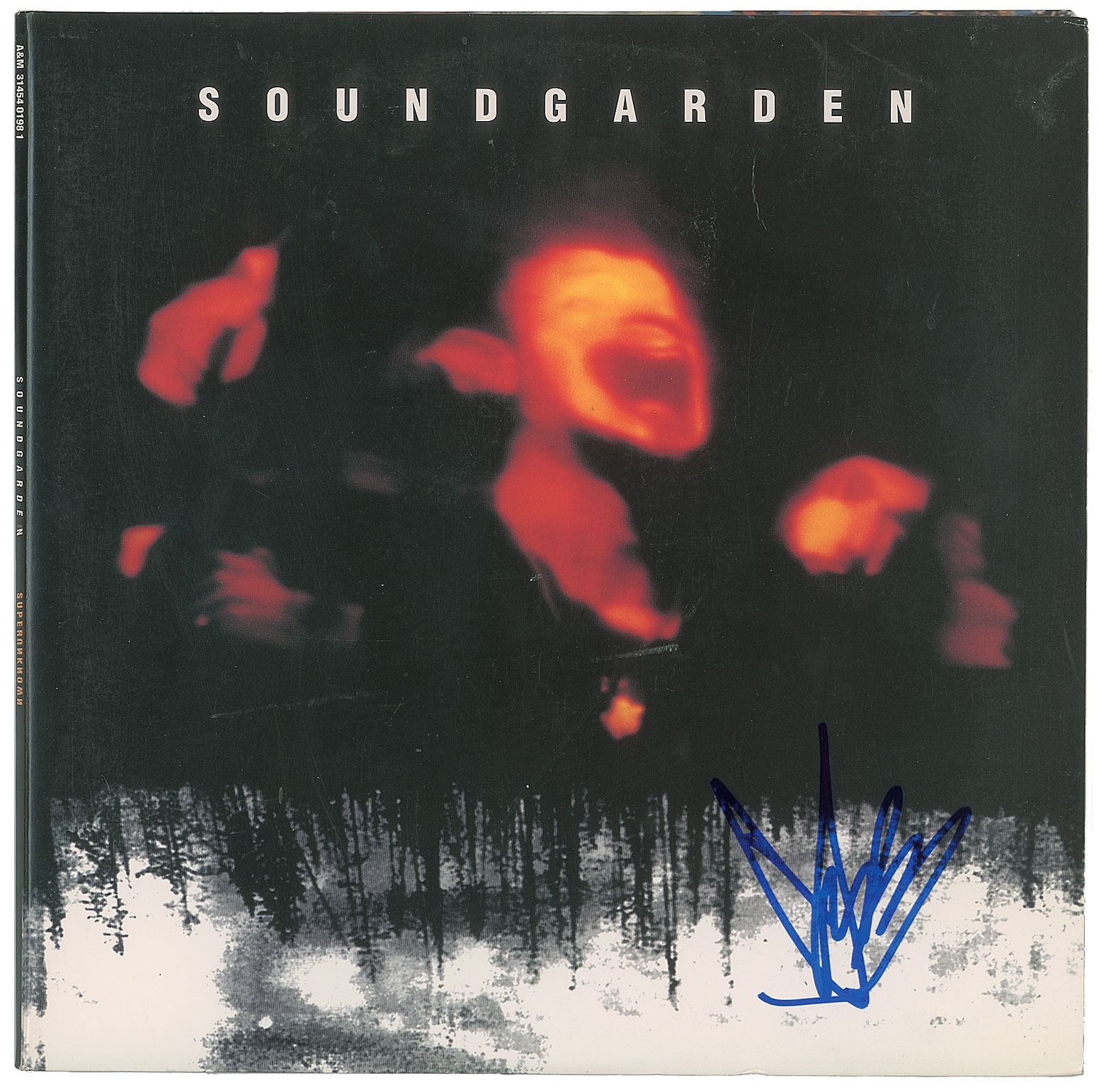 Superunknown album signed on the front cover in blue felt tip by Chris Cornell. In fine condition. The record is included. A grunge masterpiece signed by the band's late lead singer.