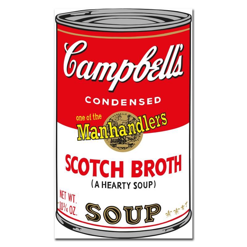 "Soup Can Series 2" is a suite of 10 limited edition silk screen prints on museum board from Sunday B Morning featuring the works of Andy Warhol. The piece is stamped in blue on the back with "Published by Sunday B. Morning" and "fill in your own signature" and is accompanied by a certificate of authenticity. Measures approximately 23" x 35" (each).