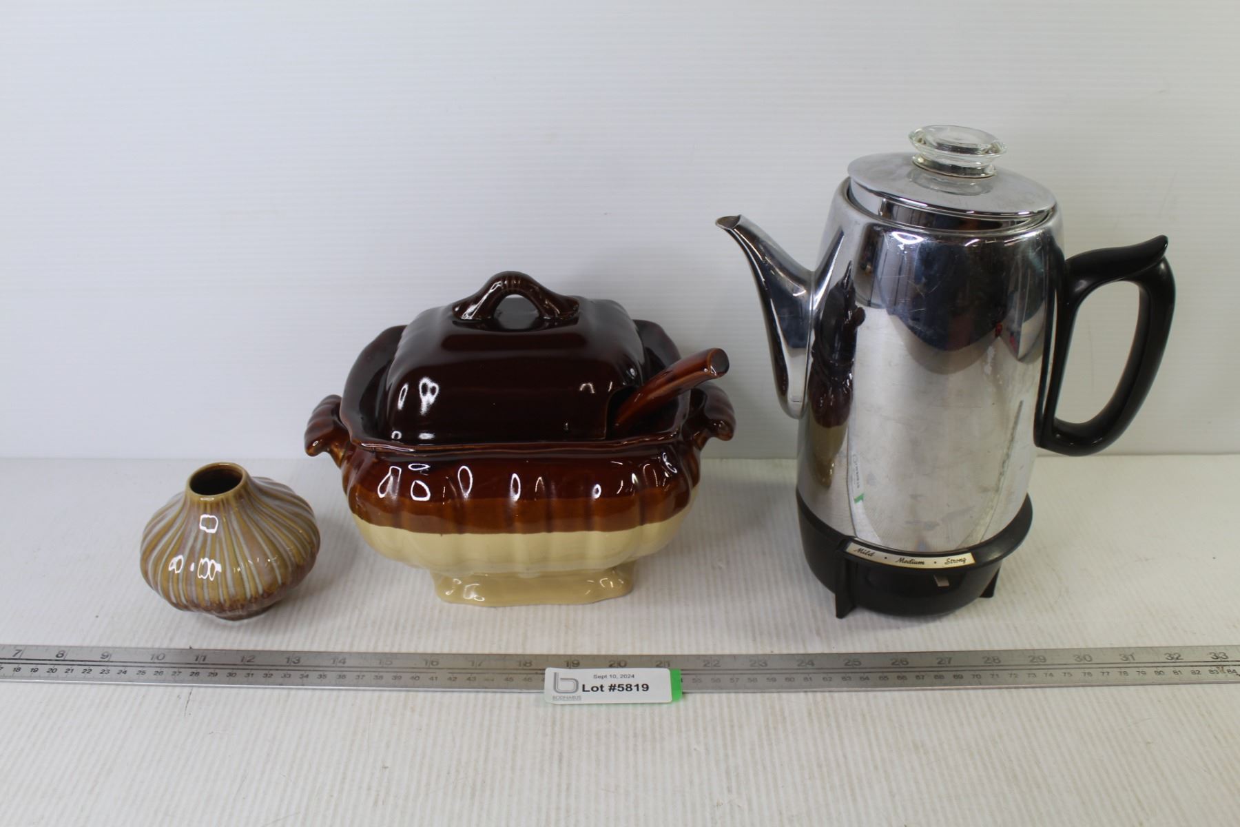 Soup Tureen - Electric Coffee Kettle (working - power cord inside) - Small Ceramic Vase