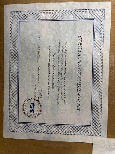 Regarding Memorabilia Items - All autographed memorabilia comes with a Certificate of Authenticity. FAA may have an interest in certain third-party authenticators and bidder hereby waives any potential conflicts therein related to FAA's relationship with such authenticators. FAA is not responsible for the opinions of any of the third-party authenticators. You should in no way rely exclusively on such third-party opinions without conducting your own due diligence prior to bidding. All Certificates of Authenticity may only be relied upon for one year from the date of sale of any item. FAA, and its consignors may be determined to be "Dealer(s)" within the meaning of California Civil Code Section 1739.7(a)(4) and as such make the following statement: SALE OF AUTOGRAPHED SPORTS MEMORABILIA: AS REQUIRED BY LAW, A DEALER WHO SELLS TO A CONSUMER ANY SPORTS MEMORABILIA DESCRIBED AS BEING AUOTOGRAPHED MUST PROVIDE A WRITTEN CERTIFICATE OF AUTHENTICITY AT THE TIME OF SALE. THIS DEALER MAY BE SURETY BONDED OR OTHERWISE INUSRED TO ENSURE THE AUTHENTICITY OF ANY COLLECTIBLE SOLD BY THIS DEALER.