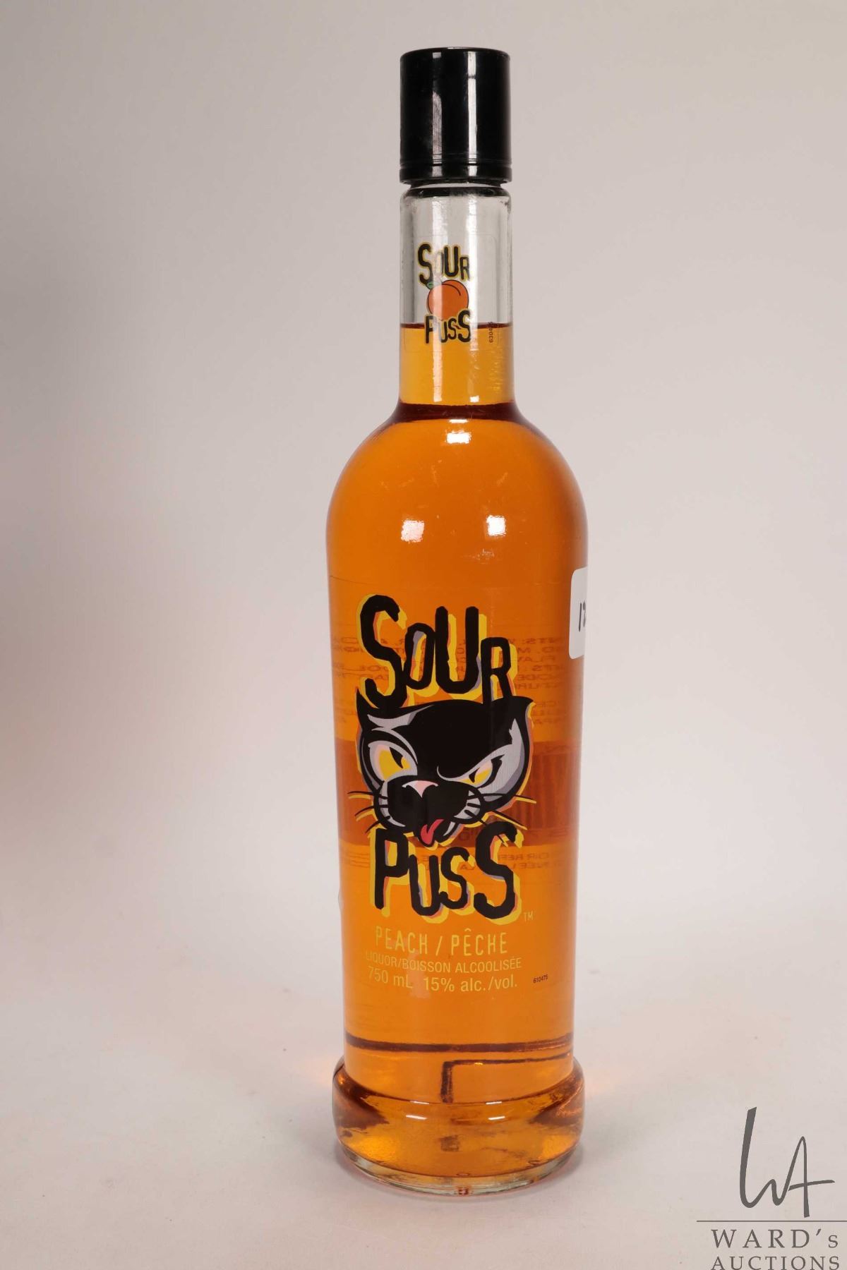 Sour Puss/ Peach Liquor/ 750ml/ 15% ABV Note: Alcohol cannot be insured by any courier in Canada. Local pick up is recommended. Canadian bidders only.