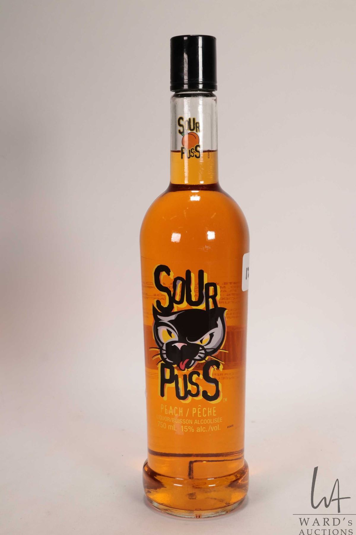 Sour Puss/ Peach Liquor/ 750ml/ 15% ABV Note: Alcohol cannot be insured by any courier in Canada. Local pick up is recommended. Canadian bidders only.