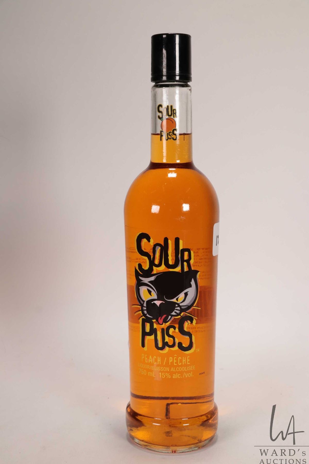Sour Puss/ Peach Liquor/ 750ml/ 15% ABV Note: Alcohol cannot be insured by any courier in Canada. Local pick up is recommended. Canadian bidders only.