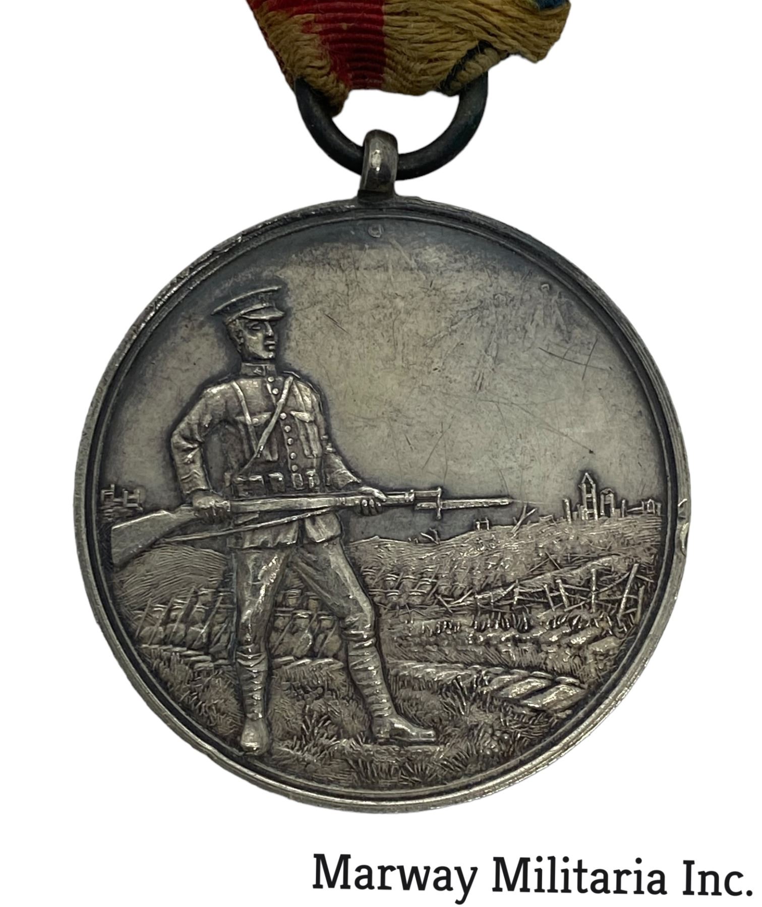 Silver. Unnamed. FOR SERVICE 1914 1918 TO KING AND COUNTRY. With ribbon and catch.