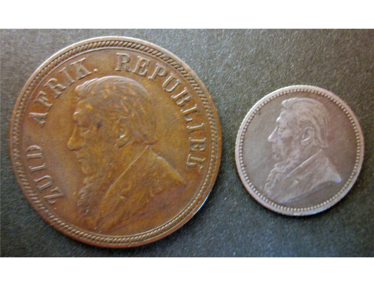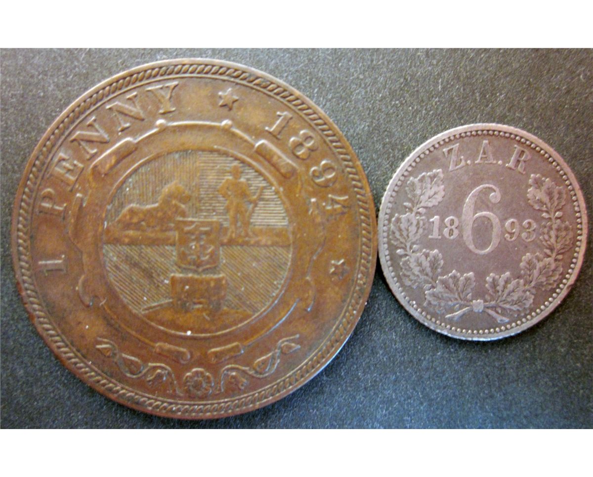 South Africa; 1 Penny 1894 in VF+ and 6 Pence 1893 in VF+. Lot of 2 coins.