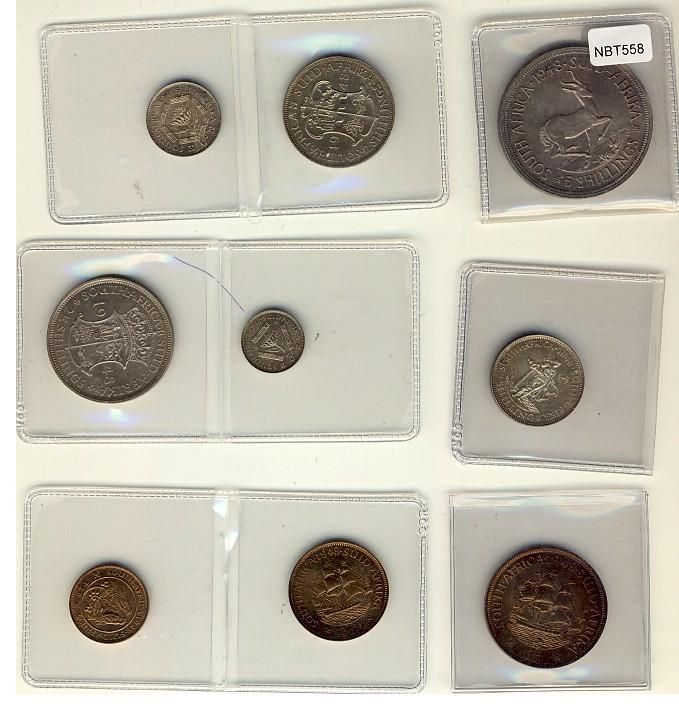 South Africa 1948 Proof Year Set ¼D to 5 Shil. Includes 9 pcs.