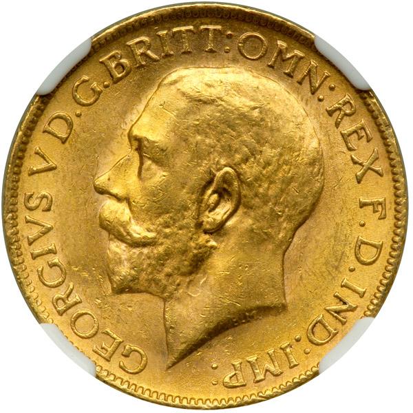 South Africa. Sovereign, 1927-SA. KM-21. George V. Head left. Reverse: St. George. NGC graded MS-64.