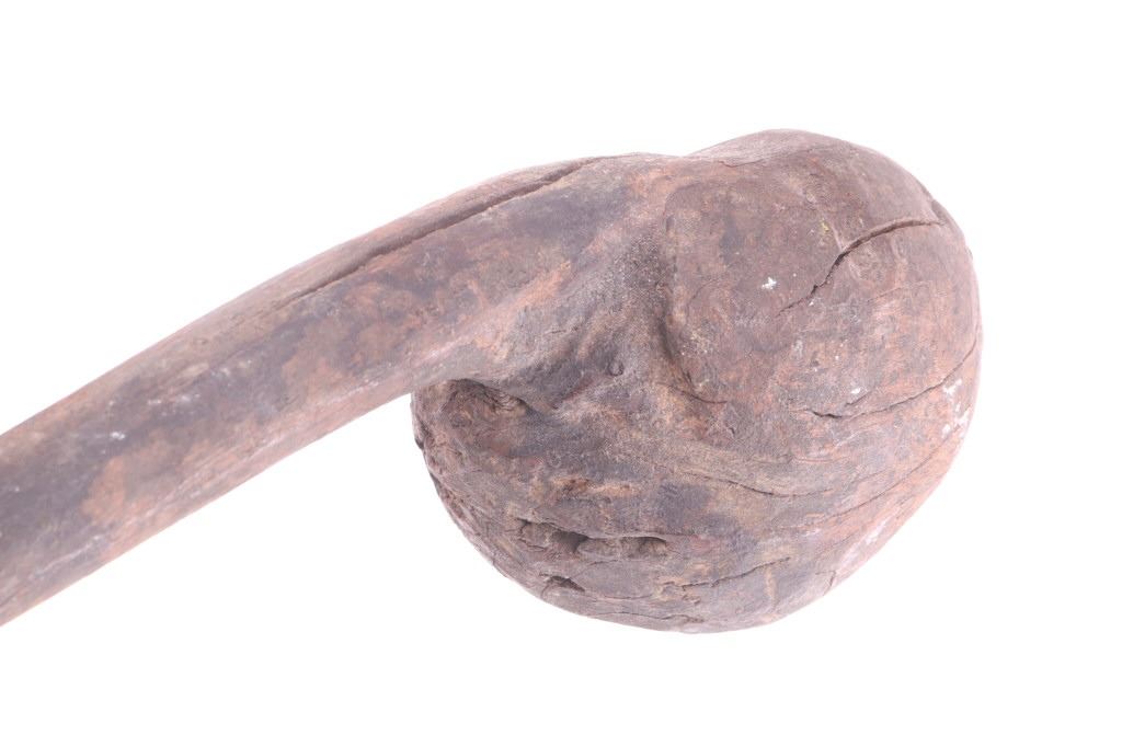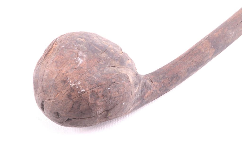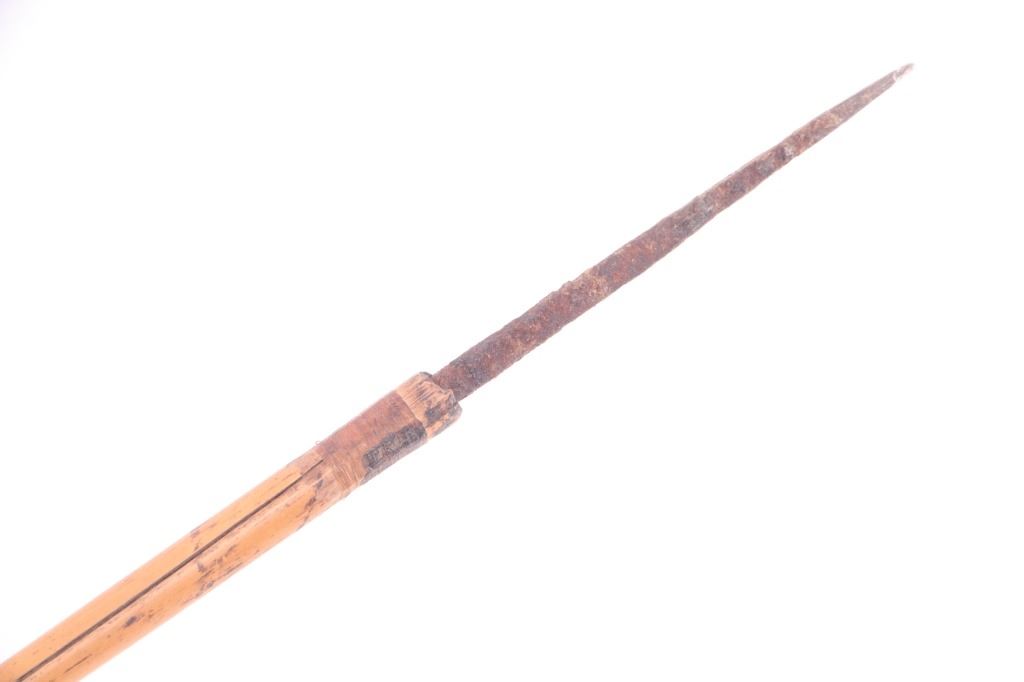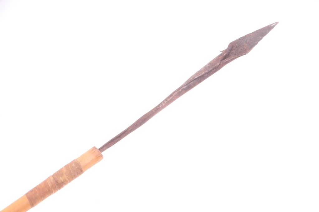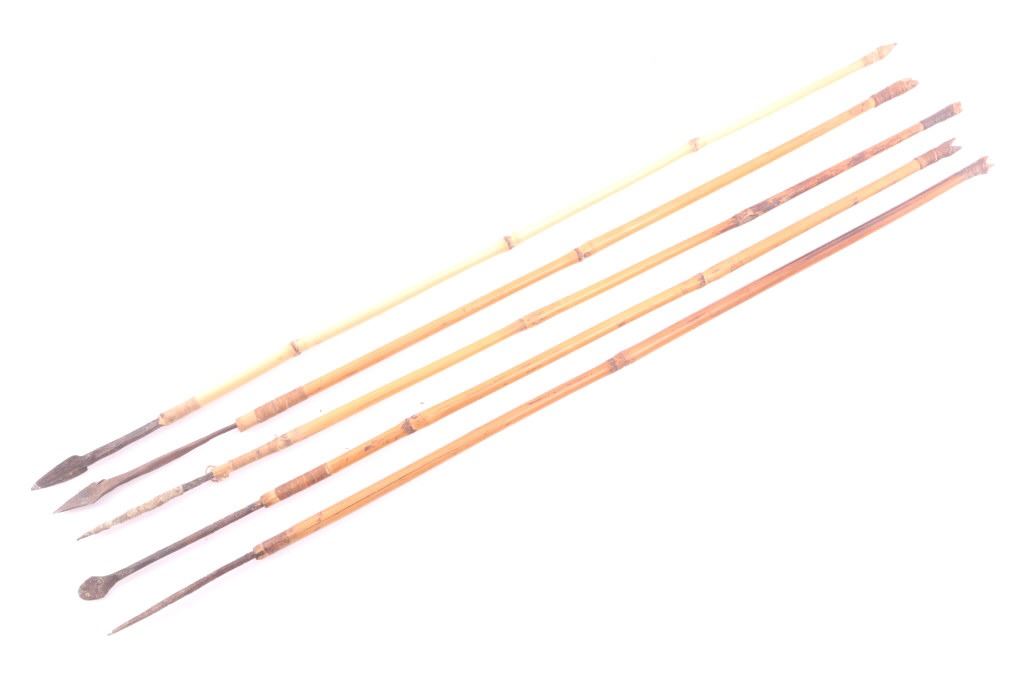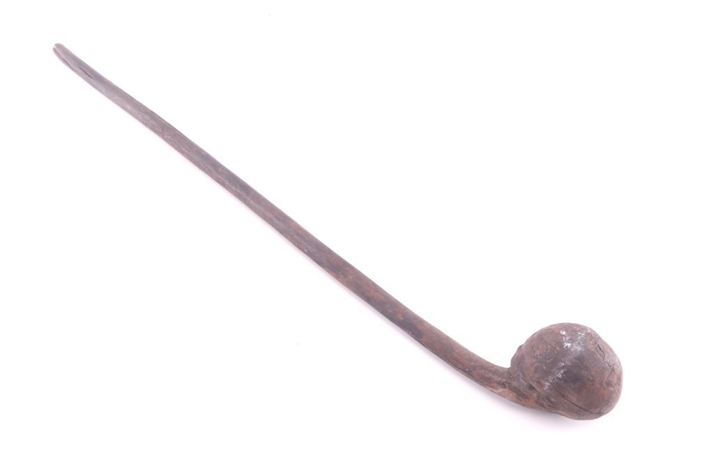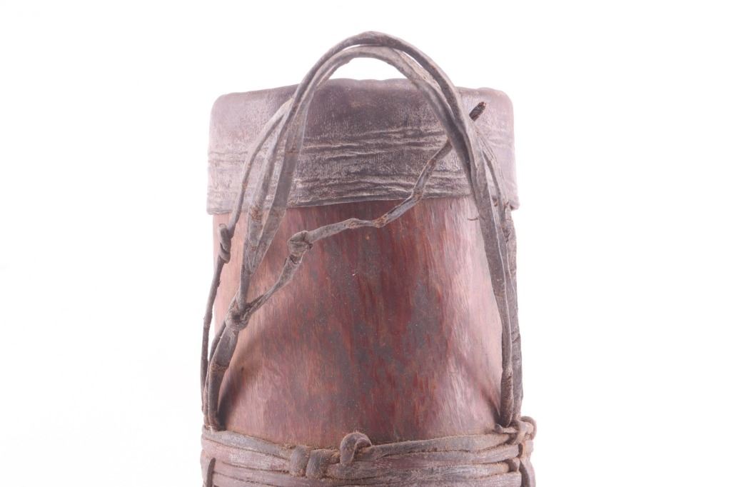 Featured in this lot is this South African Bushman hunting collection, circa early- to mid-1900's and attributed to the 1930's. There are three hunting items in this collection, the first being a South African Bushman hide wrapped quiver with five bamboo shoot arrows and three different arrow heads. The second is a personal items carrying case constructed from hide and leather wrapped bamboo trunk. The last item is a club for personal defense and finishing their prey before harvesting. The condition of this collection is good, with no obvious signs of damage. The measurements of these arrows range from 20 1/4" x 1/2" to 21" x 1/4" and the quiver measures 20 1/2" x 2 1/2" x 2 1/4".