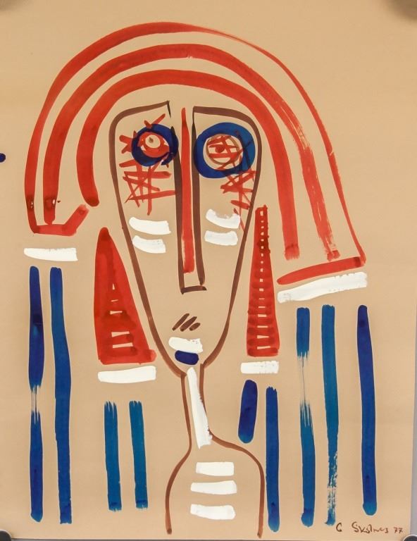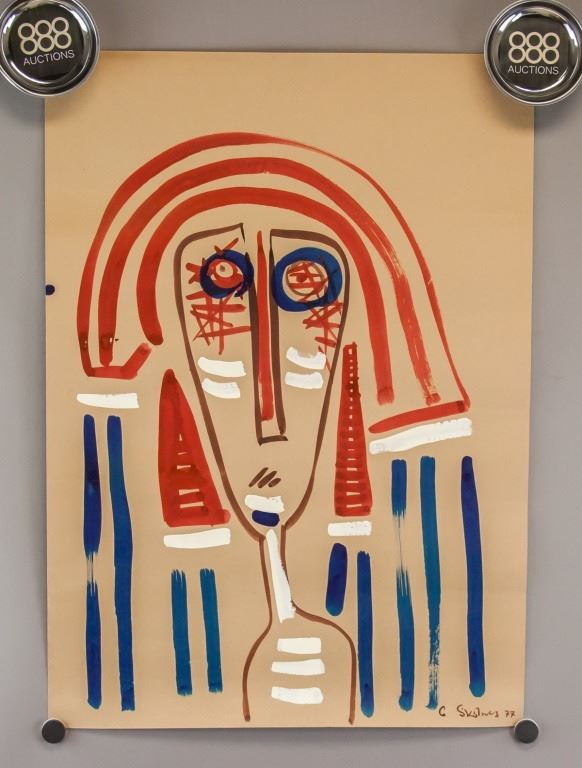 Ink on paper. Featuring an abstract portrait. Signed C. Skotnes on the lower right corner. 69 x 50 cm (27.3 x 19.5 inches)