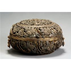 South American RepoussT Silver Pierced Oval Box, Early 20th Century, Allover chased and embos...