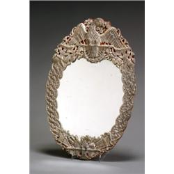 South American Silver Mirror, Late 19th Century, Embossed with bird pediment and termination...