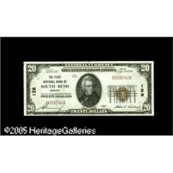 <B>South Bend, IN</B></I> - $20 1929 Ty. 1 <B>The First NB</B></I> Ch. # 126<BR>It is difficult to image any note that could display a higher degree of "just off the press" freshness and originality. If you are seeking a really premium quality example for your collection, this is it. <B>Gem Crisp Uncirculated.</B></I> Lot:16867