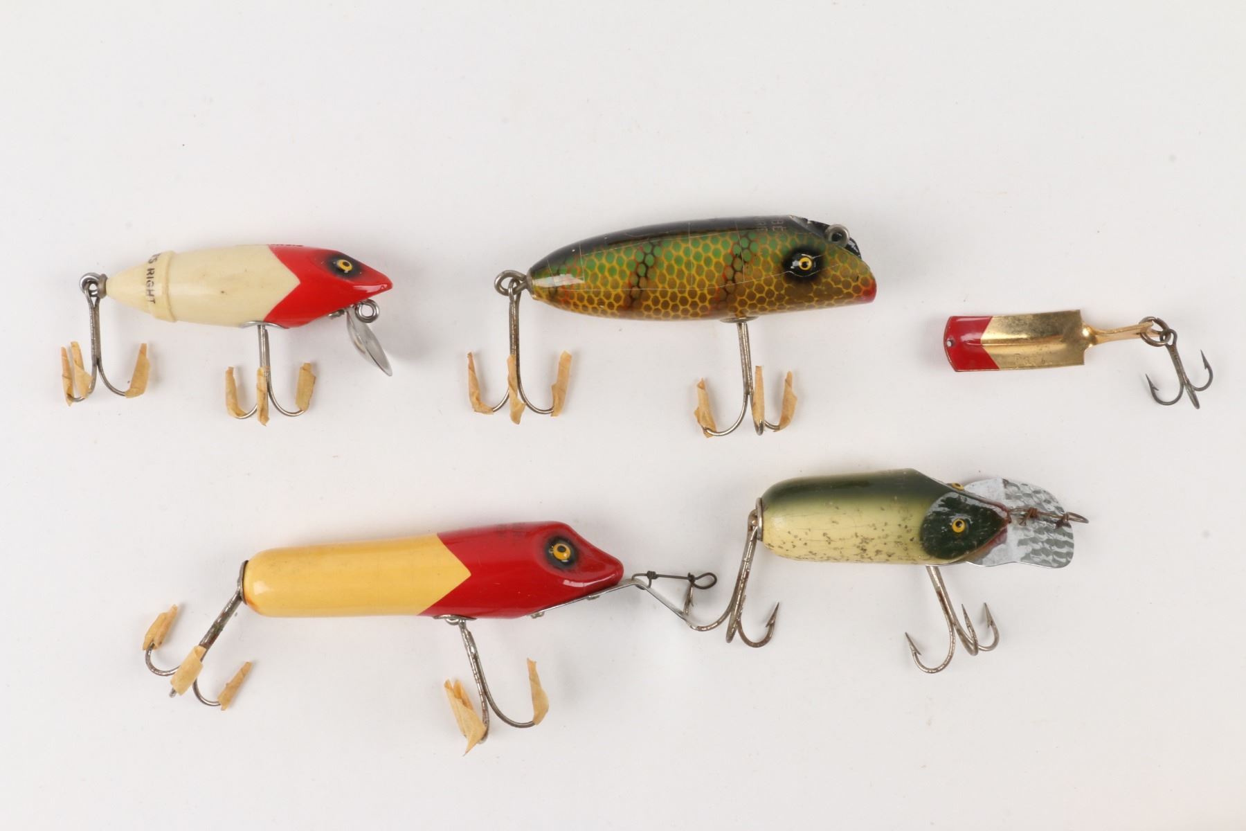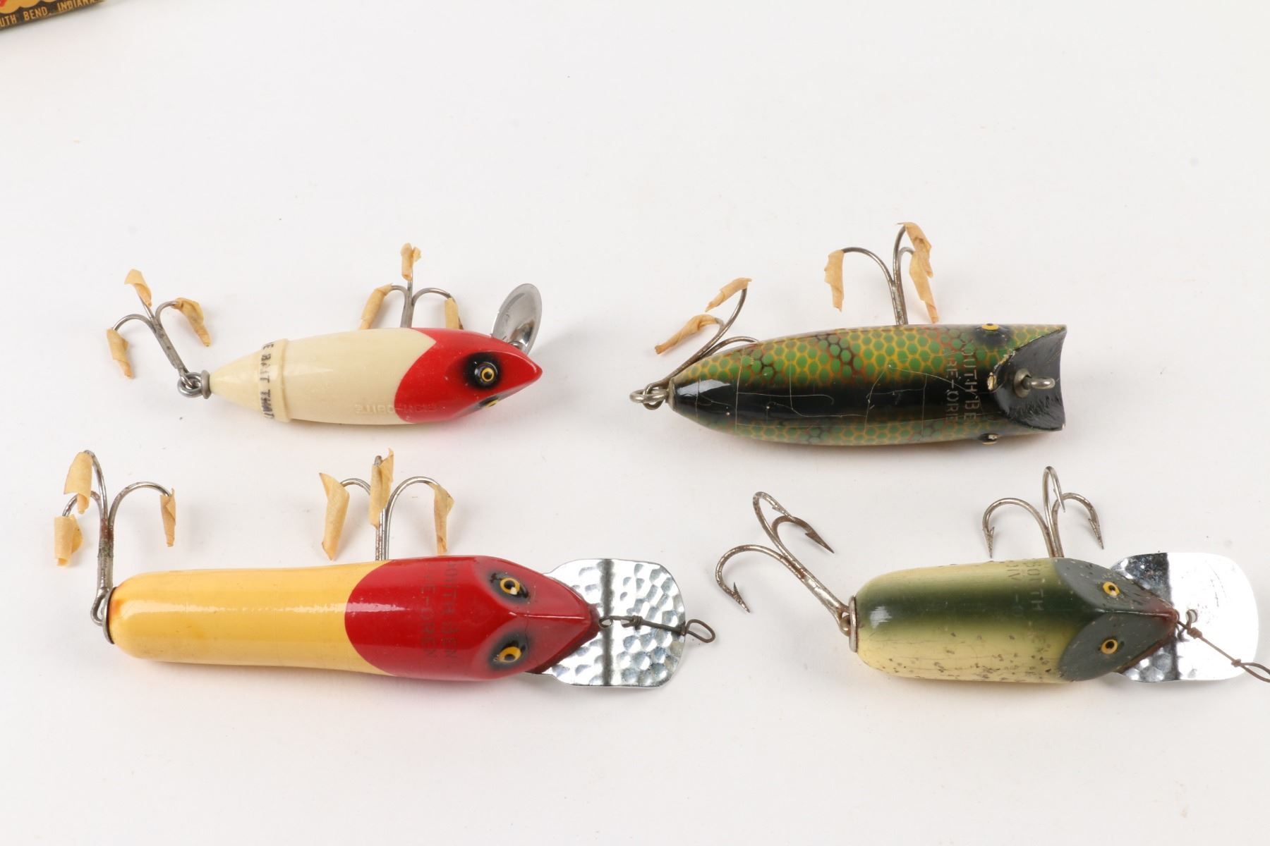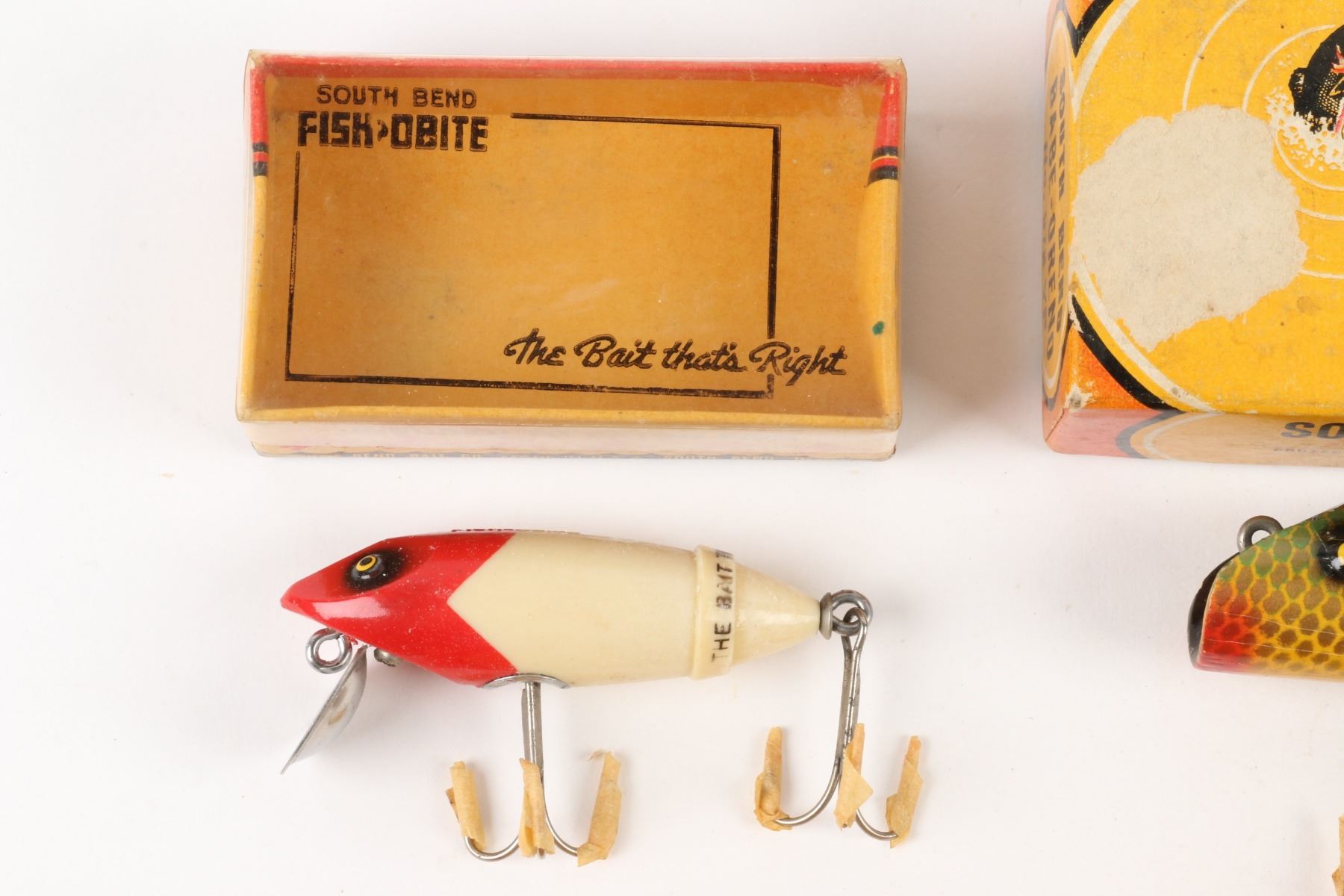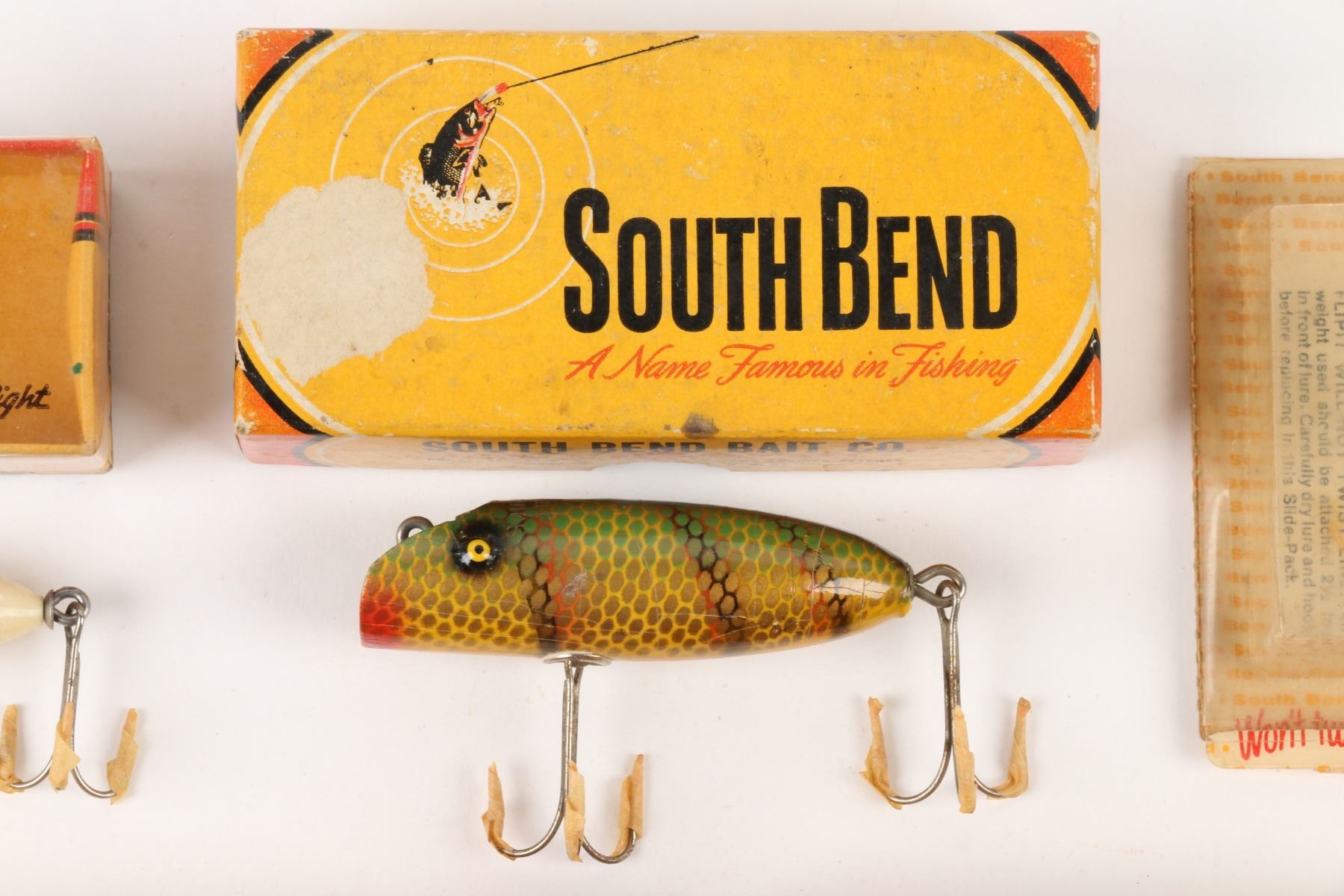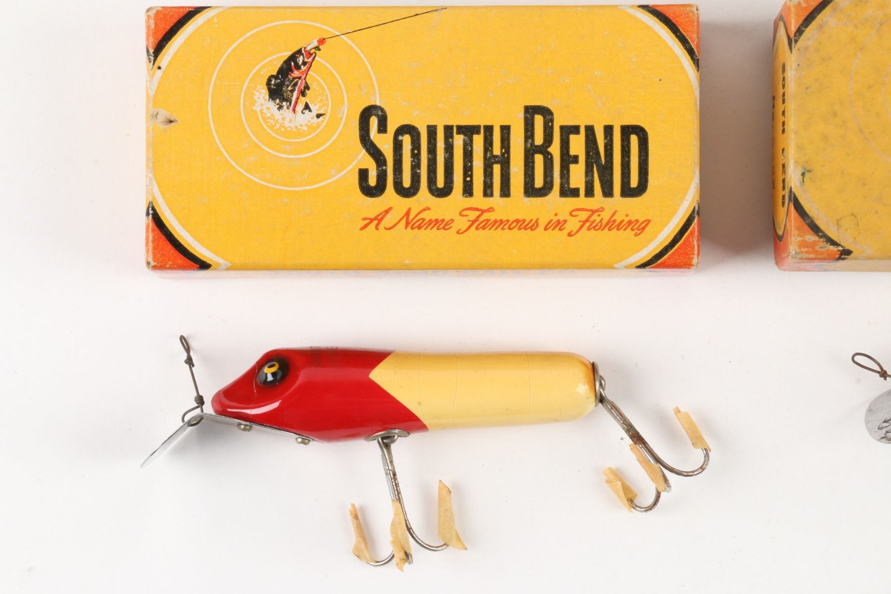 South Bend Bait Company, United States. Boxed. Material: Mixed. Quantity: 5. Grade: VG. 3" - 4.5" boxes. Est. $100-125.