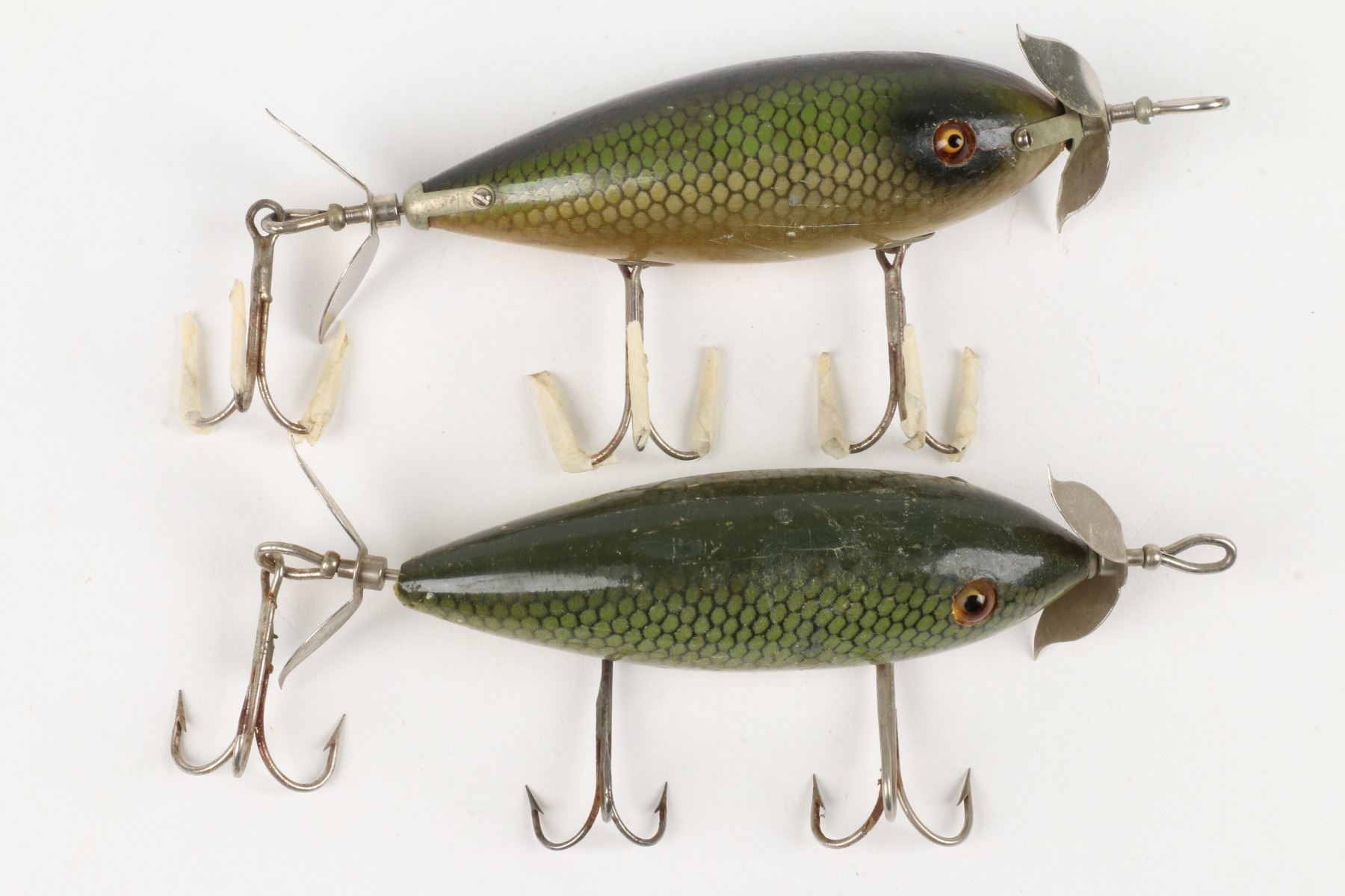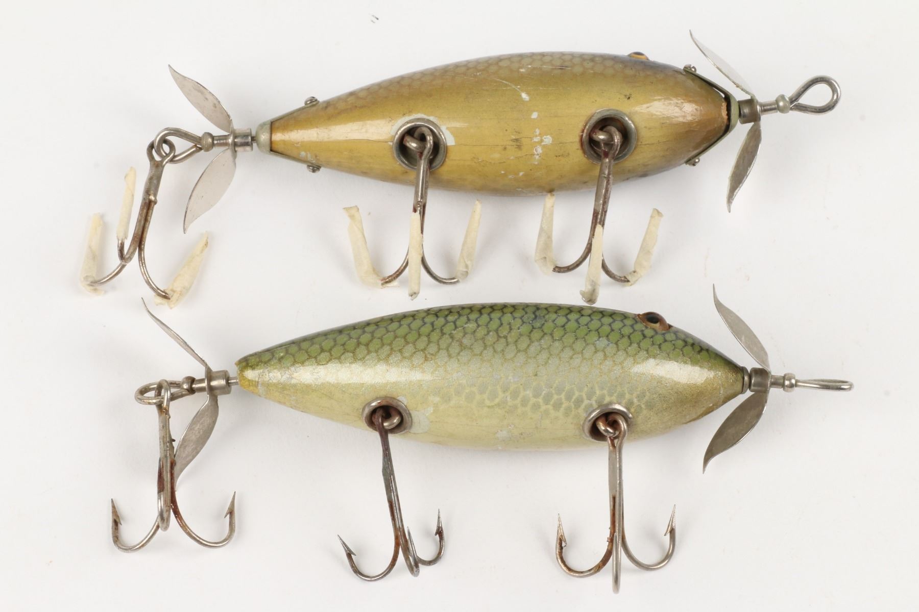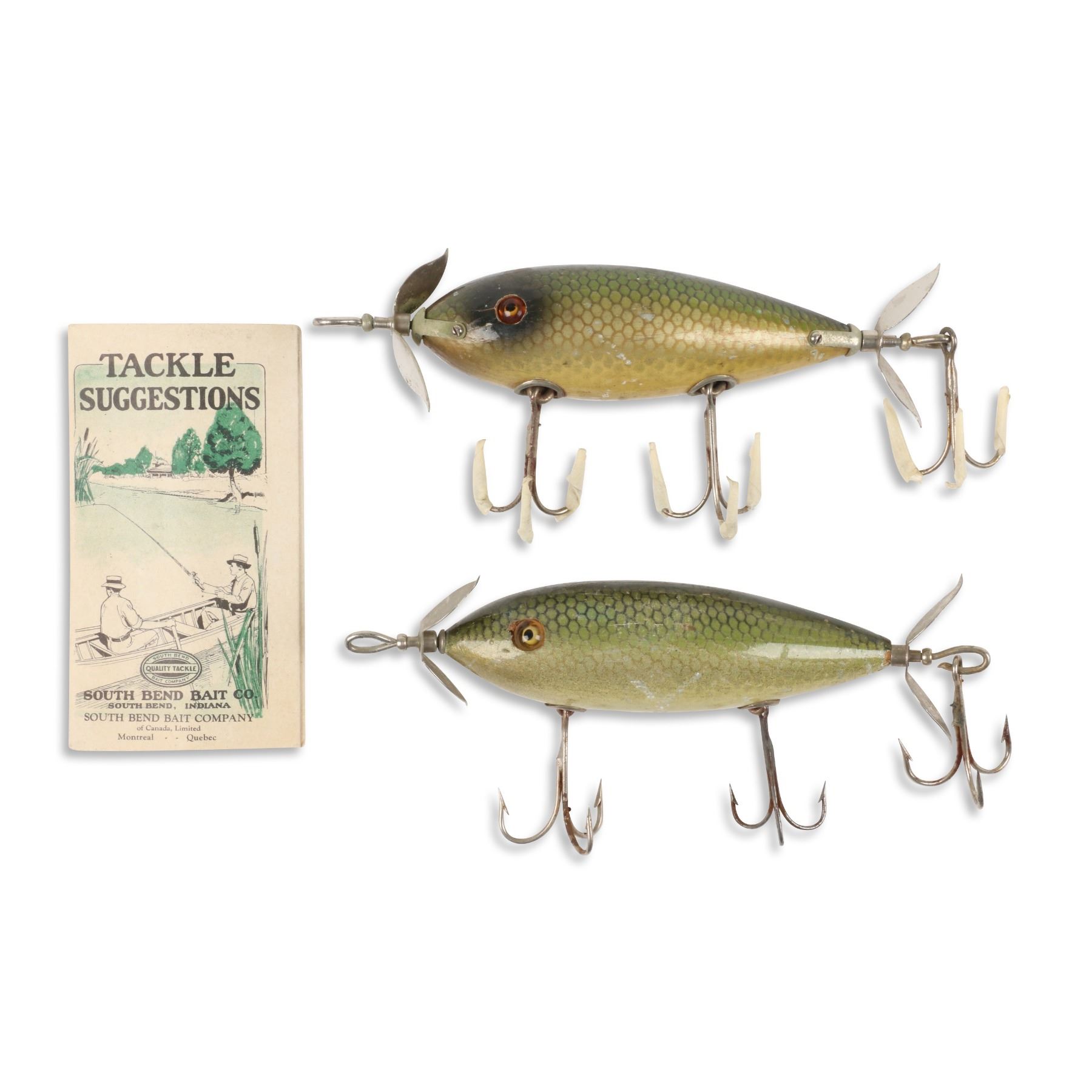 South Bend Bait Co., United States. Material: Wood. Quantity: 2. Grade: G+. 4" each. Est. $100-125.