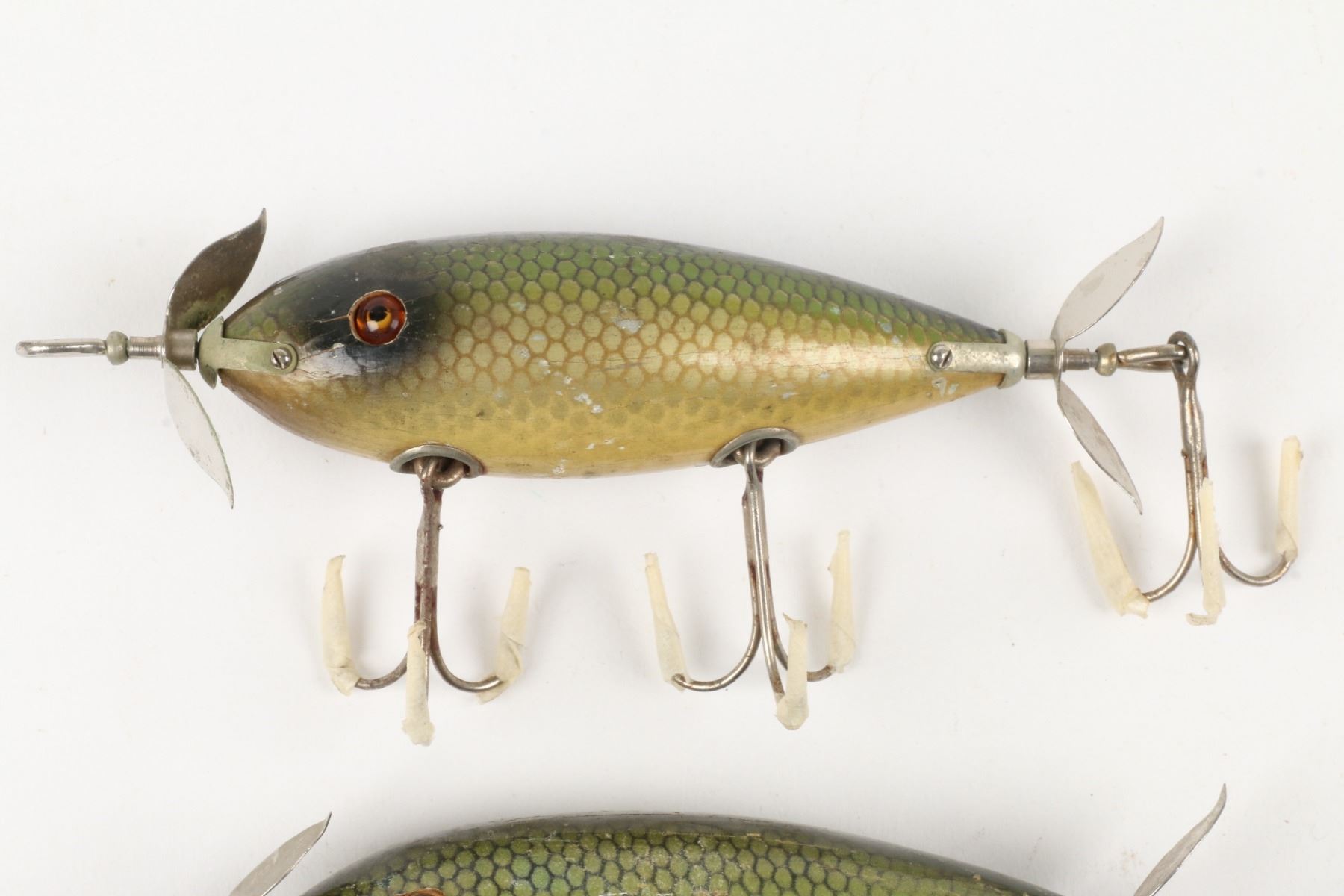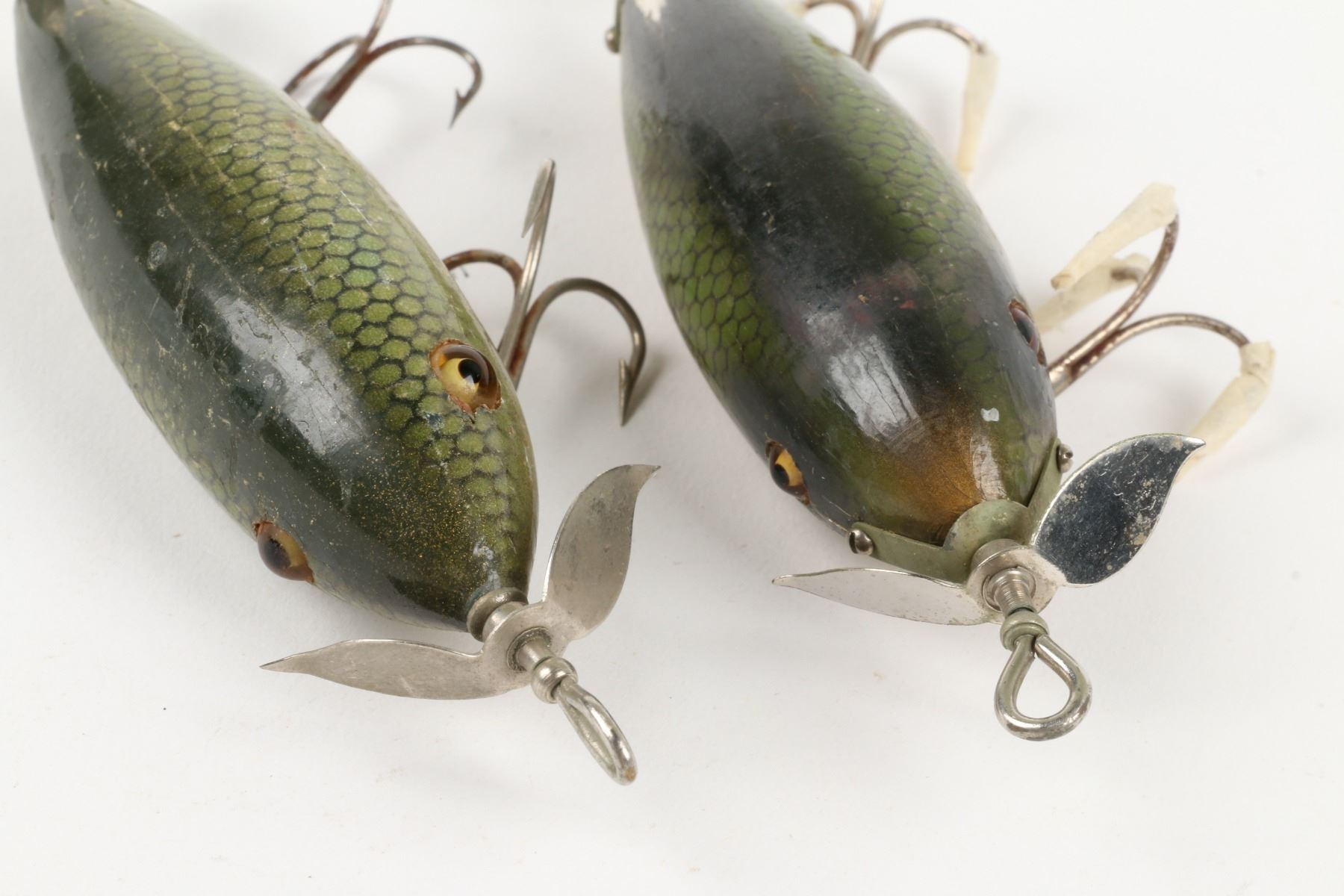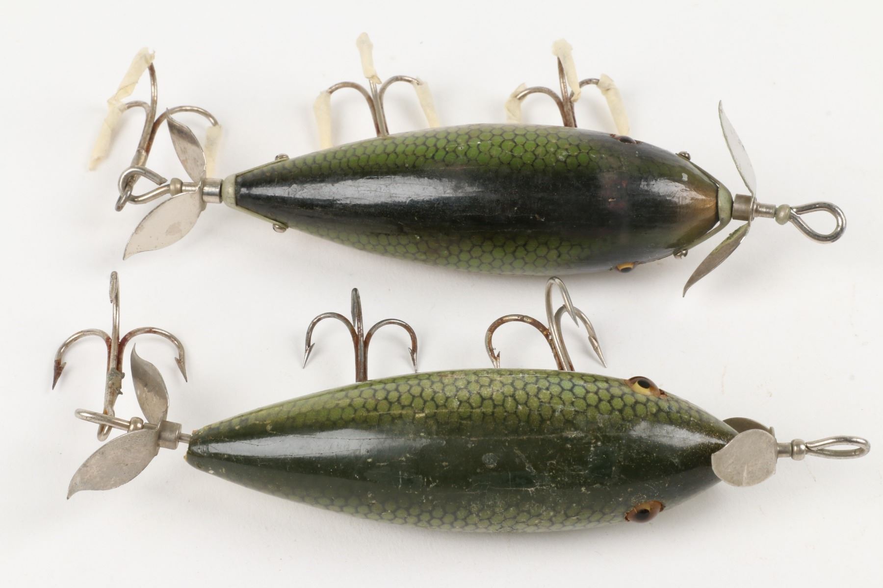 South Bend Bait Co., United States. Material: Wood. Quantity: 2. Grade: G+. 4" each. Est. $100-125.