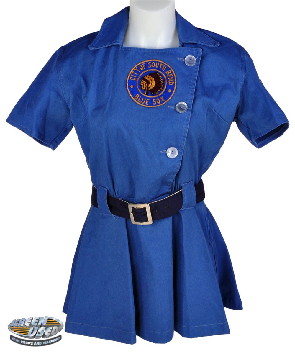(Columbia, 1992) This Baseball uniform was acquired for the production for use by an extra. The uniform features the "South Bend Blue Sox" team patch on the chest, number "24" on the back and the "All American Girls Professional Baseball League" patch on the left arm. The uniform has no size marked and exhibits minor wear from use, but remains in good condition.