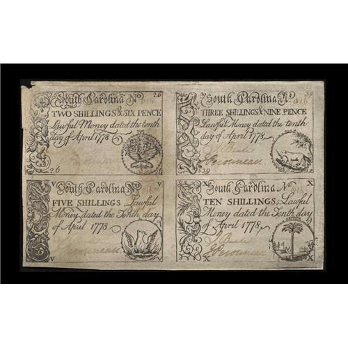 South Carolina April 10, 1778 Uncut Sheet of Four Choic South Carolina April 10, 1778 Uncut Sheet of