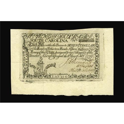 South Carolina February 8, 1779 $70 Extremely Fine.