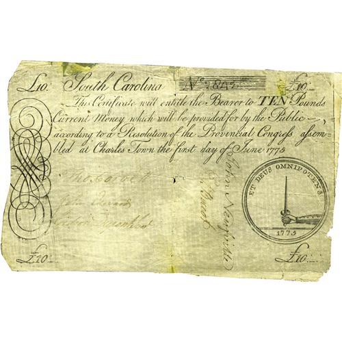 South Carolina June 1, 1775 10 Pounds Very Fine.
