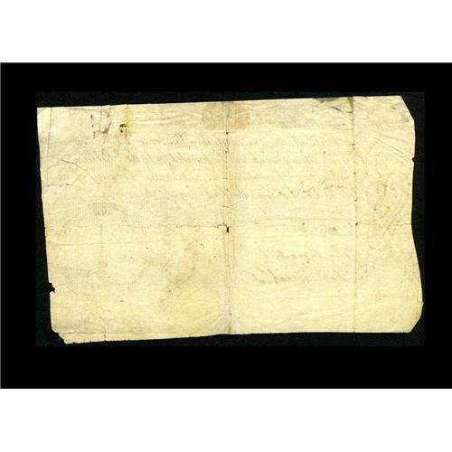 <B>South Carolina June 1, 1775 <$10 Very Fine.</B></I> There are a few minor repairs at the edges, but this is a far more intact example than the generally-seen rags of this oversize issue. All five signatures are legible, as is all the text. The vignette is sharp and wholly untouched by any of the minor problems.